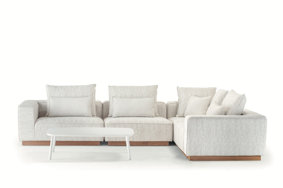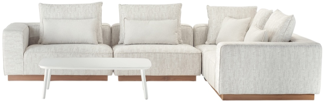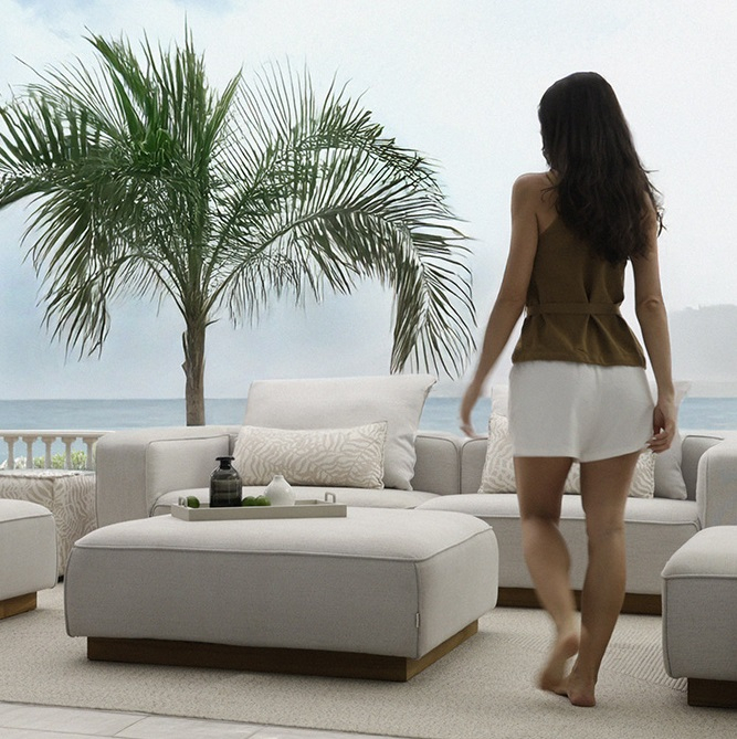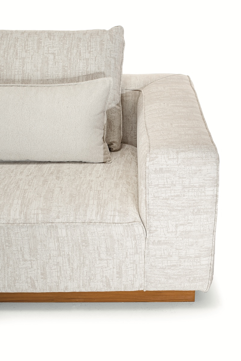 Комплект мебели для отдыха Don - это универсальный модульный комплект мебели для гостиной, сочетающий максимальный комфорт и неподвластный времени дизайн. Он состоит из двух диванных, центральной, угловой секций и журнального столика. Сочетание прочного алюминиевого каркаса с элегантными деталями из тика обеспечивает стильный внешний вид и высокую прочность. Подушки наполнены быстросохнущим пеноматериалом Fast Dry Foam и обтянуты водоотталкивающей и простой в уходе олефиновой тканью - идеально для использования на улице круглый год.