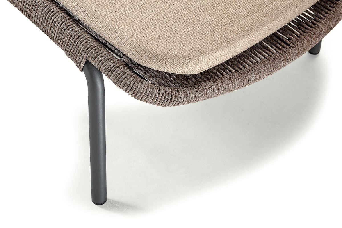 Лежак Leaf сочетает в себе элегантный дизайн и высочайший уровень комфорта. Его штабелируемый алюминиевый каркас обтянут текстильным канатом толщиной 6 мм, что обеспечивает устойчивость к погодным условиям. Эргономичный лежак имеет матрас с обивкой из олефина с водоотталкивающим слоем, что обеспечивает максимальный комфорт и простоту ухода. Идеально подходит для стильных открытых пространств, бассейнов и оздоровительных центров.