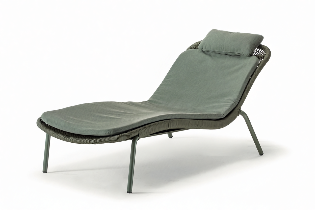 Лежак Leaf сочетает в себе элегантный дизайн и высочайший уровень комфорта. Его штабелируемый алюминиевый каркас обтянут текстильным канатом толщиной 6 мм, что обеспечивает устойчивость к погодным условиям. Эргономичный лежак имеет матрас с обивкой из олефина с водоотталкивающим слоем, что обеспечивает максимальный комфорт и простоту ухода. Идеально подходит для стильных открытых пространств, бассейнов и оздоровительных центров.