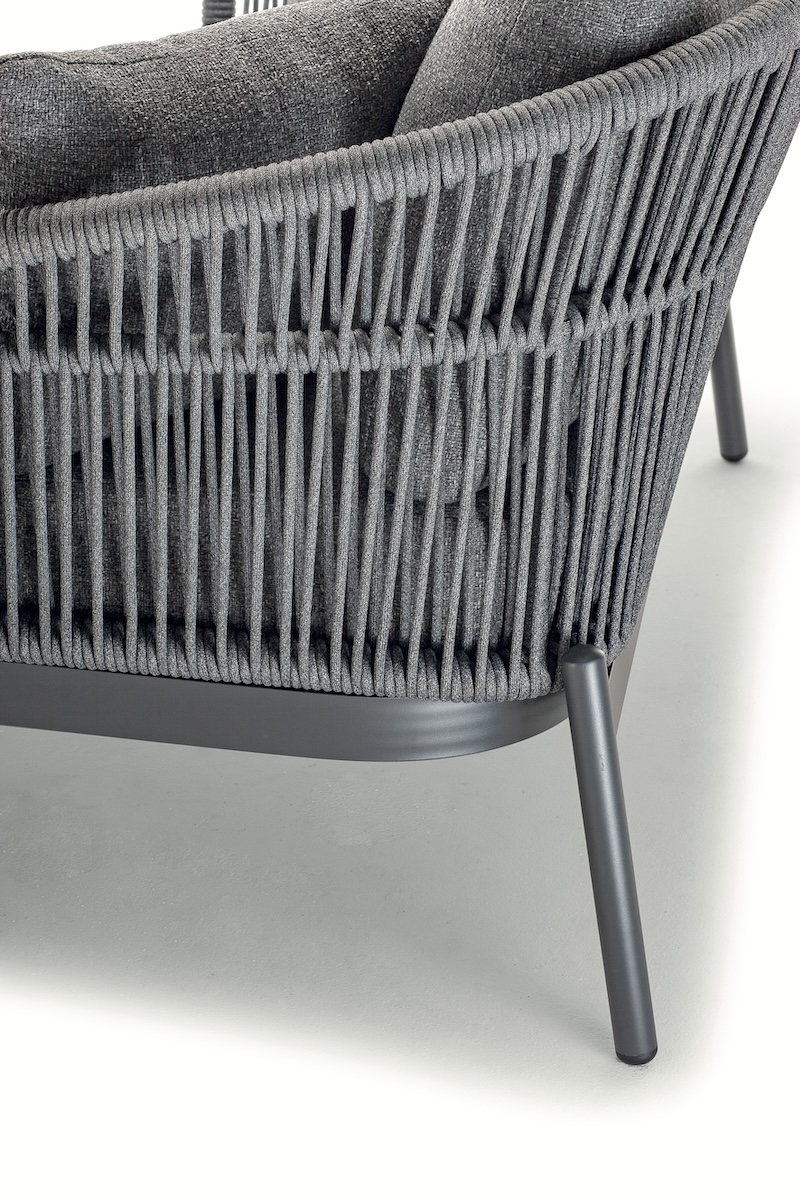 Лаунж-диван Tropea сочетает в себе современный дизайн, максимальный комфорт и высокое качество изготовления. Прочный алюминиевый каркас обтянут текстильным канатом, что обеспечивает элегантный внешний вид и устойчивость к погодным условиям. Просторная зона отдыха оснащена водоотталкивающими подушками из олефина и обеспечивает роскошный отдых - идеально для сада, патио или бассейна.