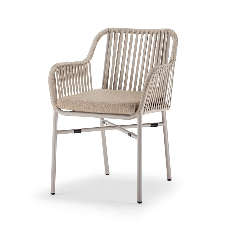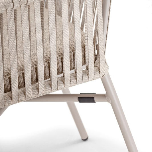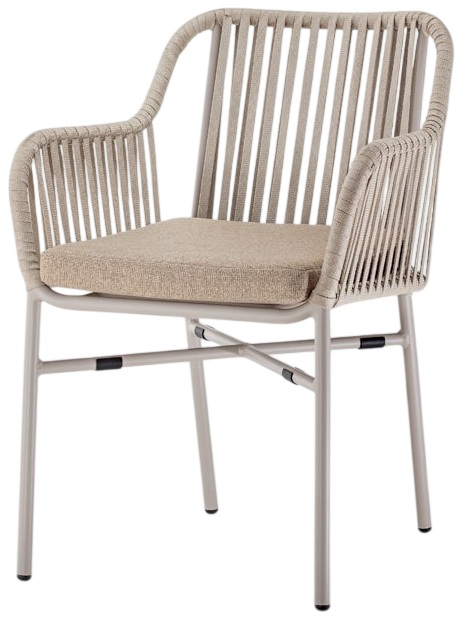 Прочный алюминиевый каркас гарантирует устойчивость и долговечность, а полиолефиновый канат делает кресло не только стильным, но и износостойким. Съёмная подушка из олефина обеспечивает мягкость сидения и легкость в уходе - даже после дождя она быстро сохнет и сохраняет безупречный вид.