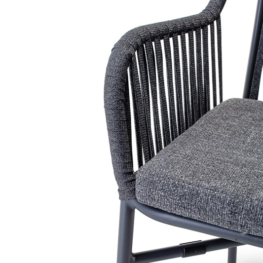 Прочный алюминиевый каркас гарантирует устойчивость и долговечность, а полиолефиновый канат делает кресло не только стильным, но и износостойким. Съёмная подушка из олефина обеспечивает мягкость сидения и легкость в уходе - даже после дождя она быстро сохнет и сохраняет безупречный вид.