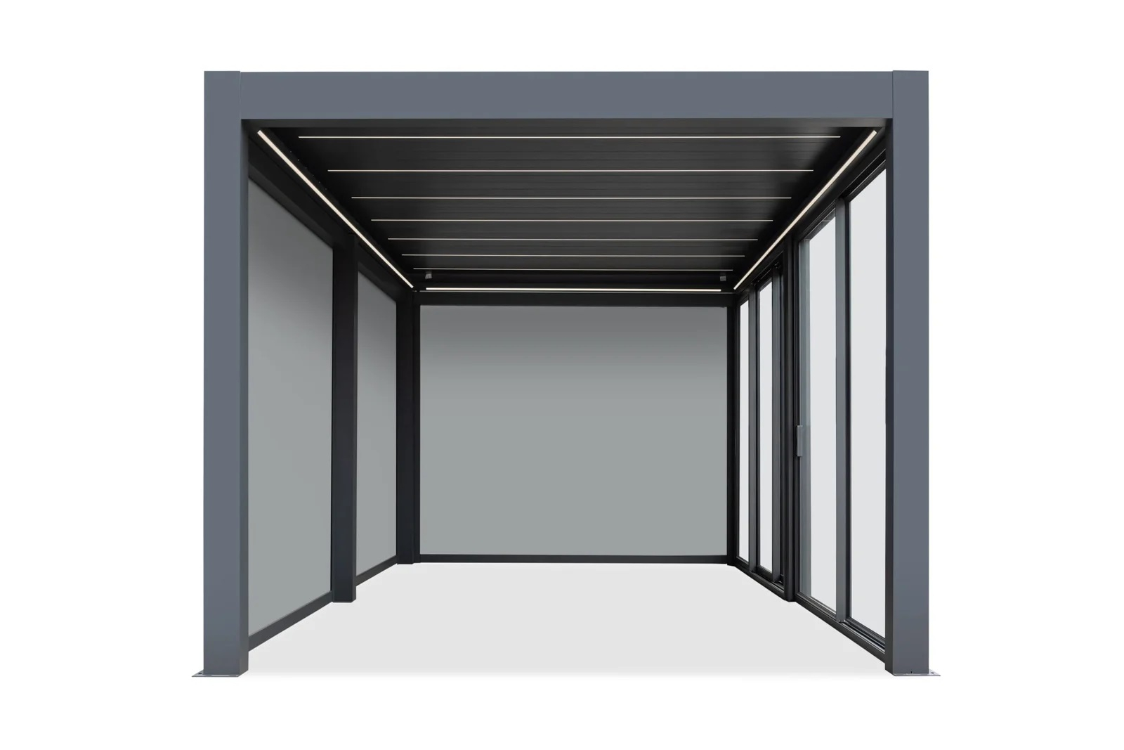 Встроенная LED-подсветка с теплым светом создает уютную атмосферу в вечернее время, превращая террасу, патио или зону отдыха в многофункциональное пространство для любого времени суток. Дополнительные опции - раздвижные стеклянные панели, боковые шторы, жалюзи и экраны - обеспечивают защиту от ветра, дождя и посторонних взглядов, гарантируя комфорт и приватность в любую погоду.