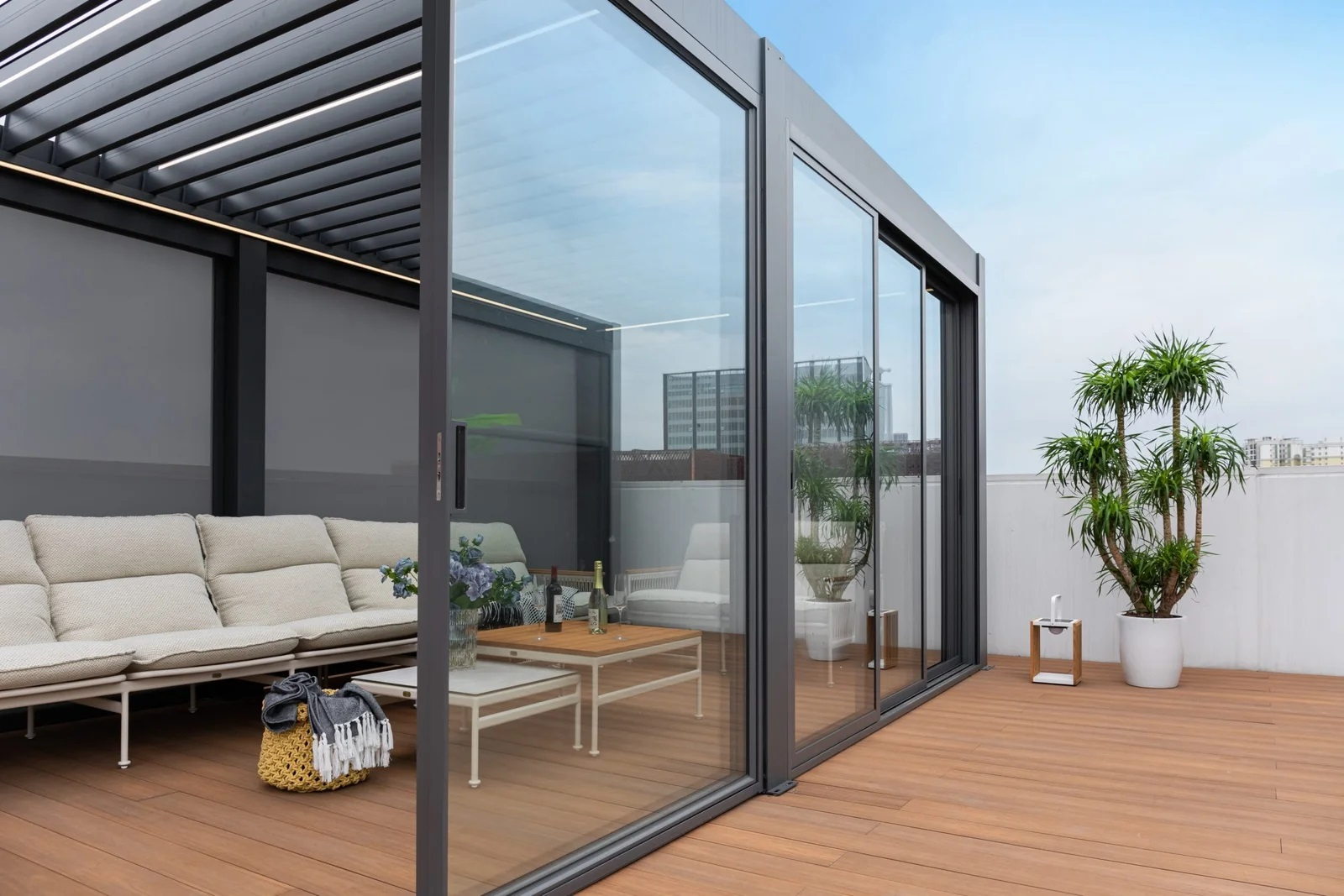 Pergola 120 Series - это инновационная моторизованная пергола, сочетающая в себе элегантный дизайн и интеллектуальные технологии.