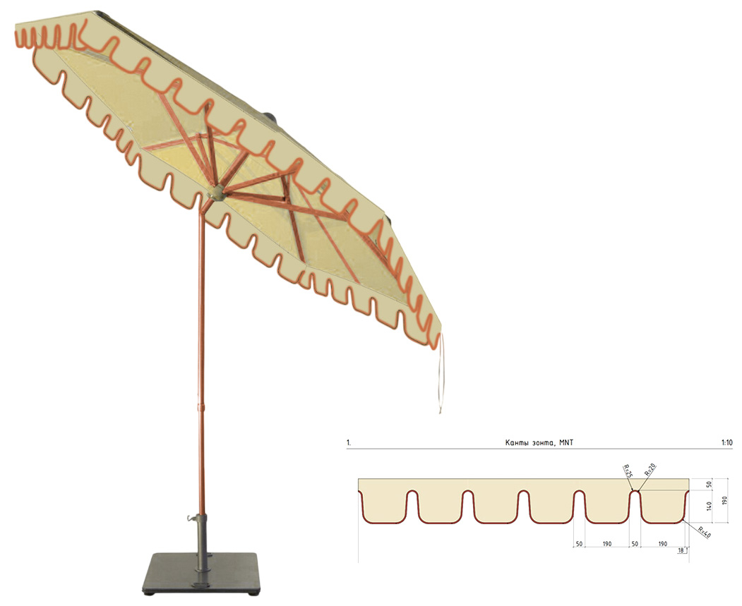Цена на сайте указана за модель с каркасом в цвете RAL 2013, куполом из ткани aifim ECRU-9823 с фигурным воланом и кантом в терракотовом цвете код 704. Стоимость других моделей и дополнительную информацию уточняйте у менеджера.