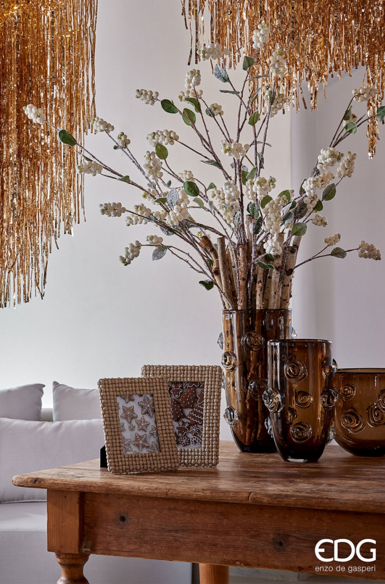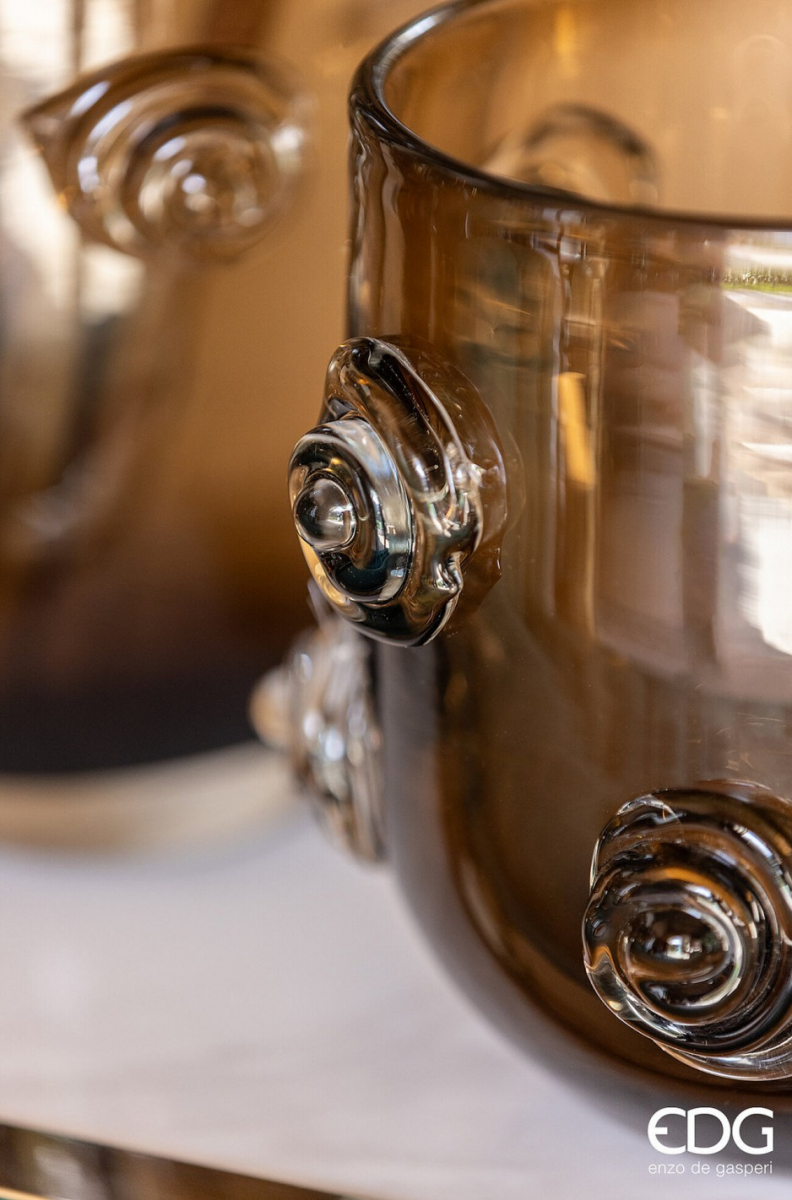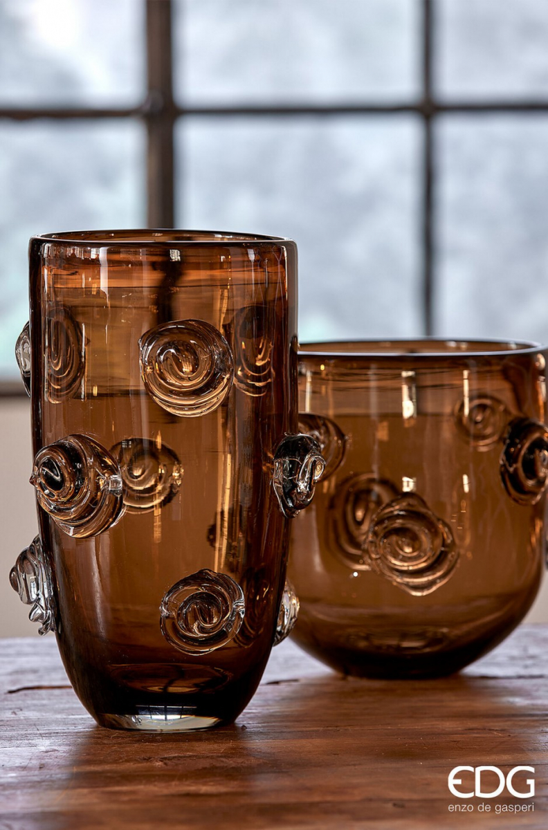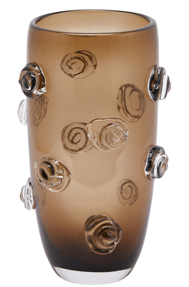 Элегантная декоративная ваза серии Vase, выполненная из прозрачного стекла и украшенная объёмными стеклянными розами. Идеальна для букетов средней высоты, акцента на журнальном столе или как самостоятельный элемент интерьера
