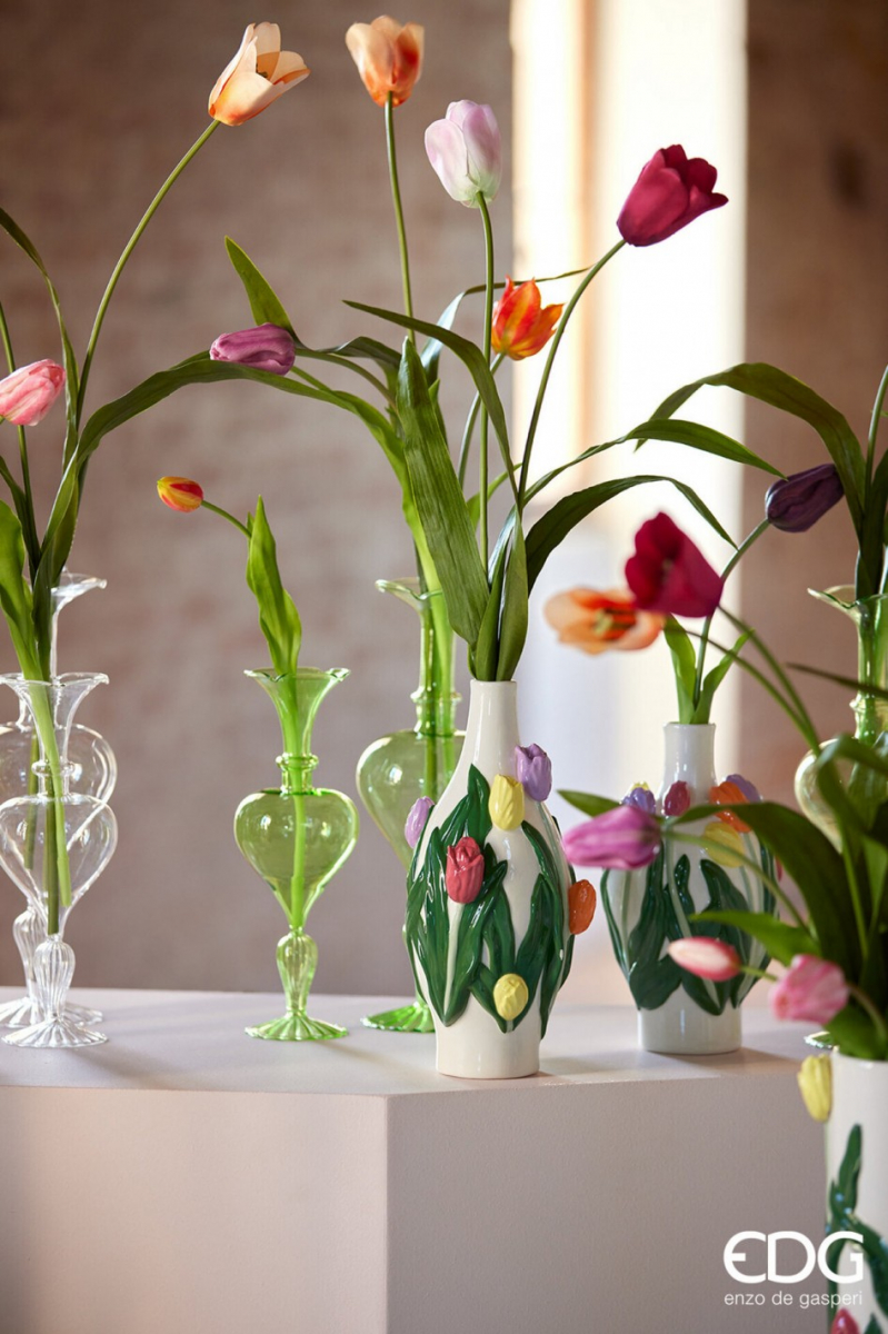 Элегантная стеклянная ваза для одного цветка из коллекции Vase - идеальное решение для акцентной подачи тюльпана, розы или веточки эвкалипта. Прозрачное стекло подчёркивает форму бутона и создаёт лёгкий, воздушный акцент в интерьере - на полке, столе или подоконнике.