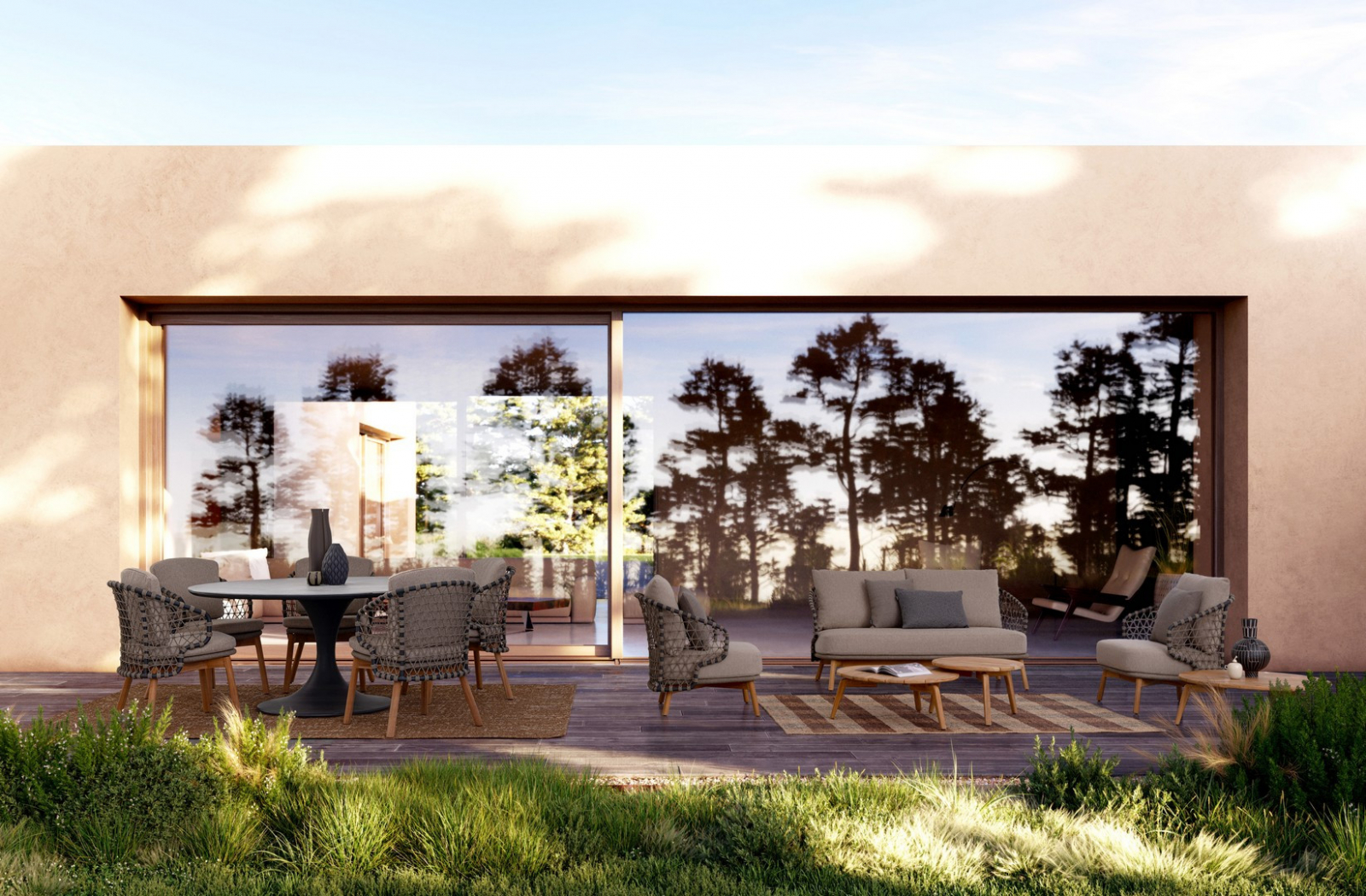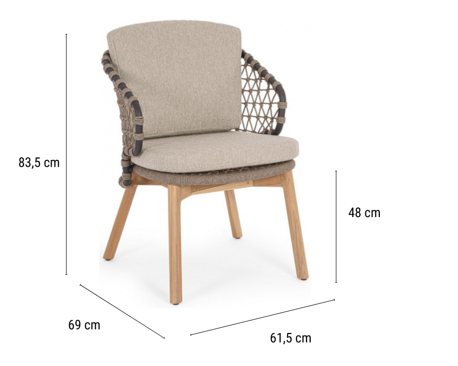 Eularia – это кресло с высококачественным плетением и деревянными ножками. Оно станет прекрасным дополнением для разнообразных открытых пространств различных проектов. Великолепная комбинация плетения из роупа, которое обвивается вокруг алюминиевой рамы, и ножек из тика, славящегося своей прочностью и надежностью, позволяющей использовать мебель из этой древесины на свежем воздухе, придает модели гостеприимный и домашний характер.