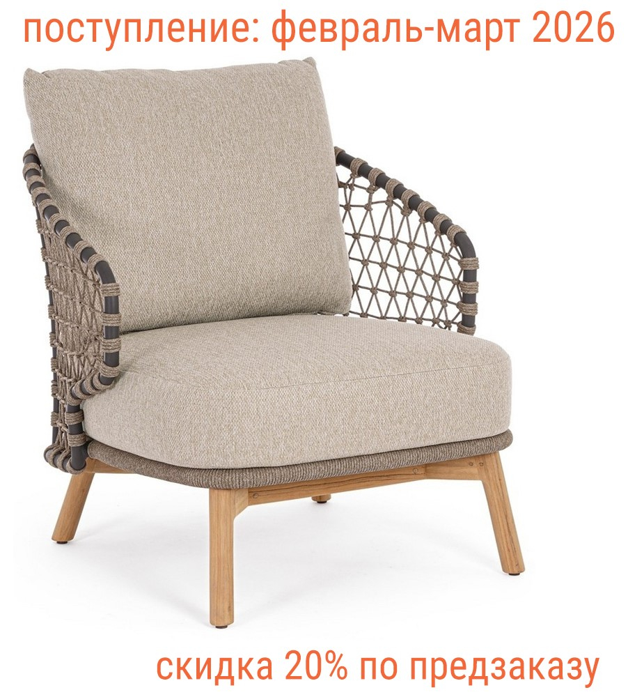 Eularia – это кресло с высококачественным плетением и деревянными ножками. Оно станет прекрасным дополнением для разнообразных открытых пространств различных проектов. Великолепная комбинация плетения из роупа, которое обвивается вокруг алюминиевой рамы, и ножек из тика, славящегося своей прочностью и надежностью, позволяющей использовать мебель из этой древесины на свежем воздухе, придает модели гостеприимный и домашний характер.