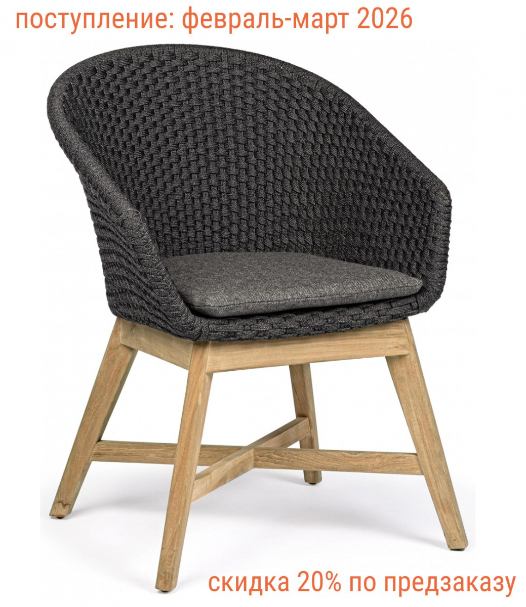 Плетеное обеденное кресло Coachella станет комфортным украшением обеденной зоны на террасе загородного дома или летней площадке.