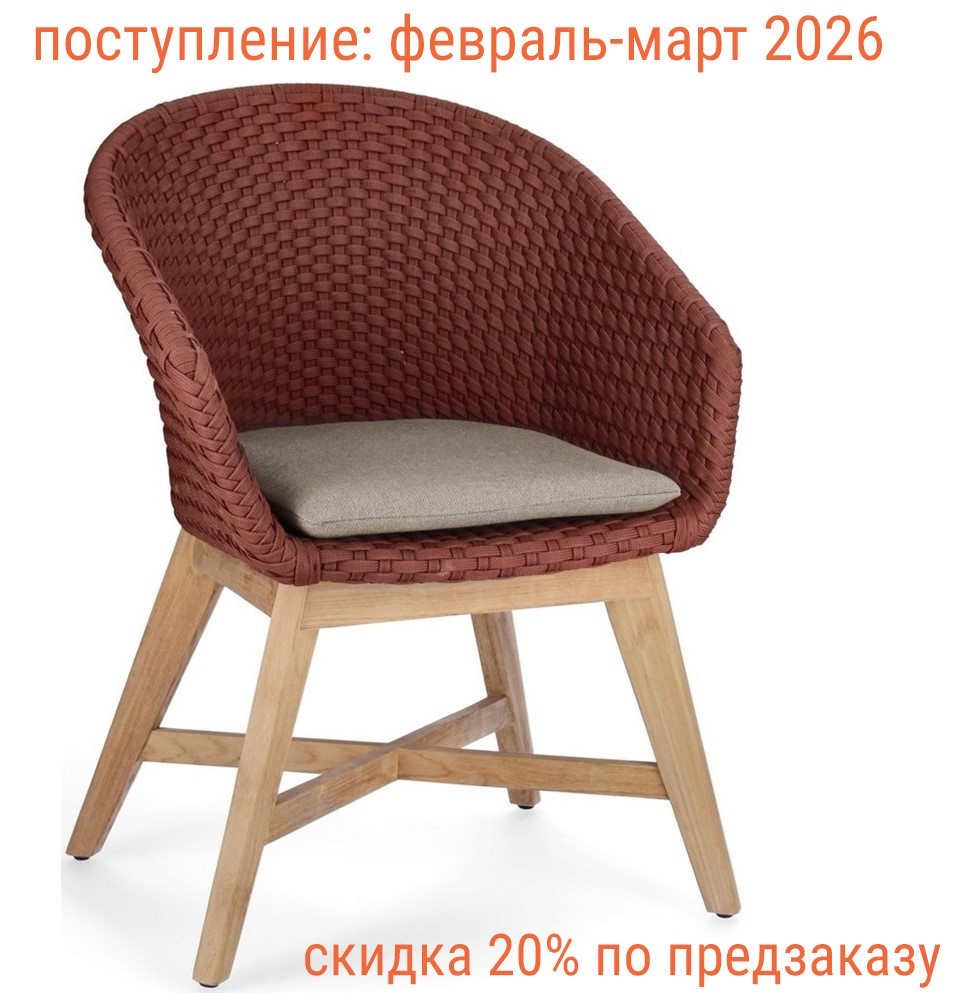 Плетеное обеденное кресло Coachella станет комфортным украшением обеденной зоны на террасе загородного дома или летней площадке.