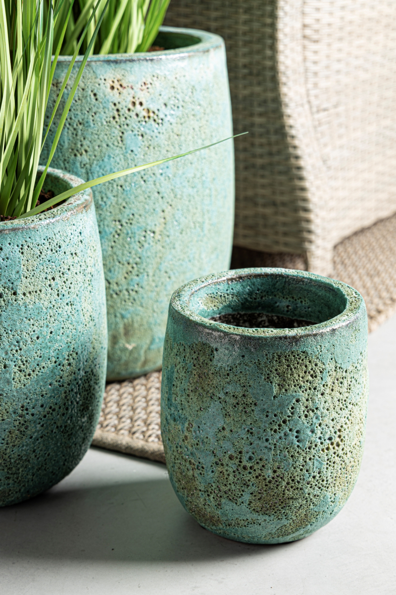 Duyen - набор стильных и прочных кашпо из глазурованной терракоты, созданных вручную для уличного применения. Каждый элемент имеет отверстие на дне для надёжного дренажа и предотвращения застоя воды, что делает кашпо идеальным для балконов, террас и садов. Натуральная текстура и возможные изменения цвета или мелкие дефекты - не брак, а признак уникальности каждого изделия. Упаковка без картонной коробки.