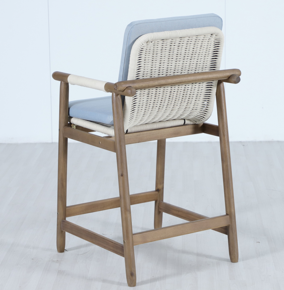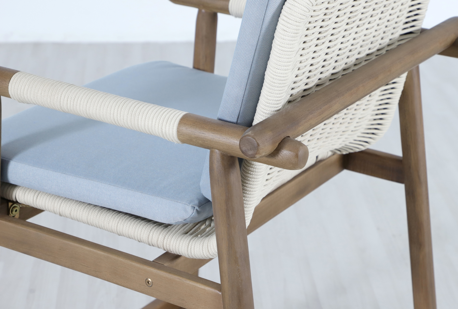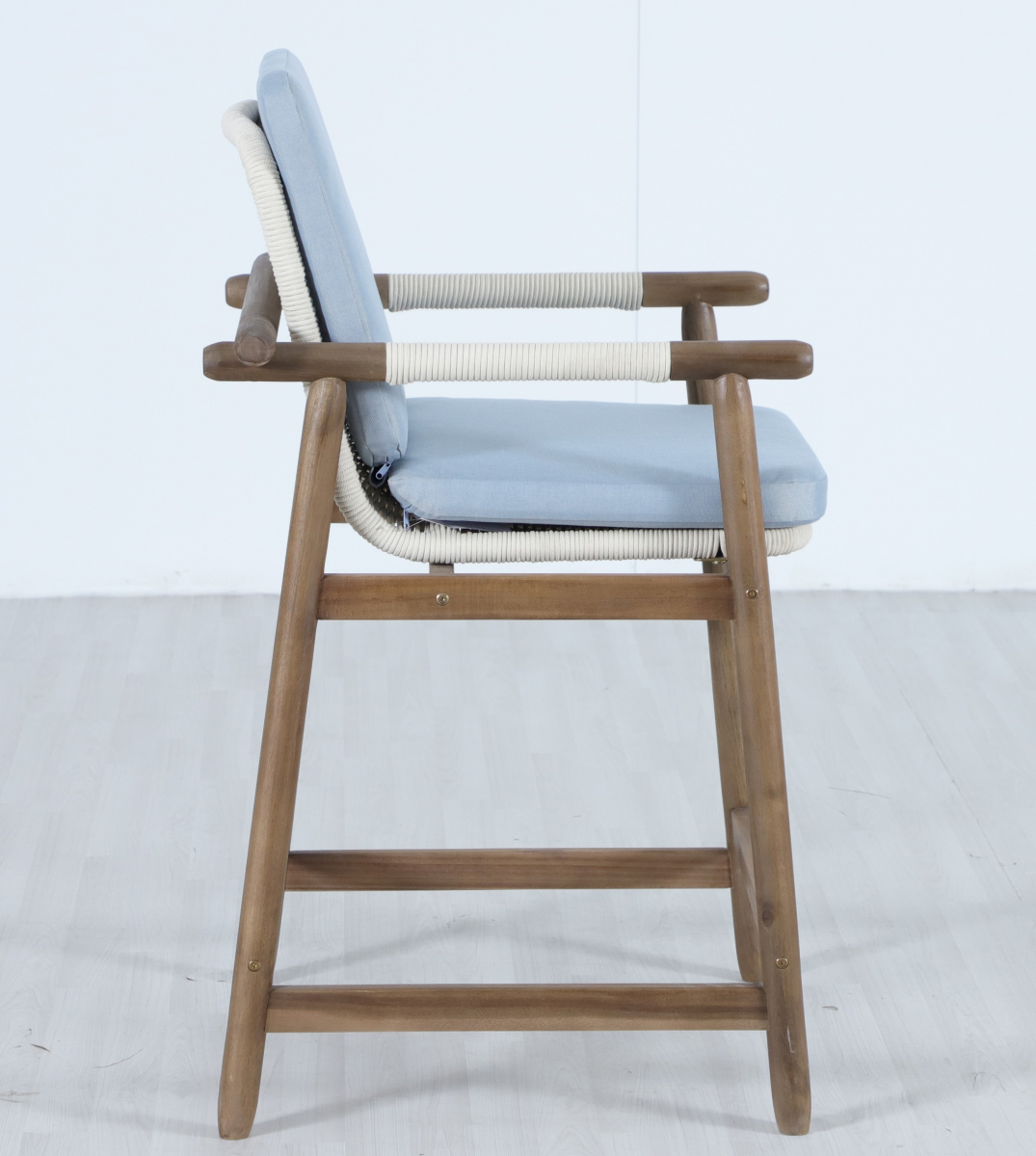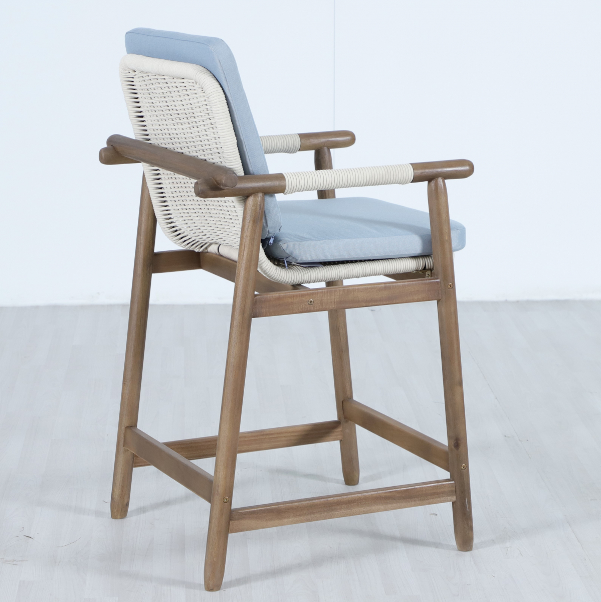 Барная группа Apoyo на 6 персон - это стильная коллекция уличной мебели из массива АКАЦИИ, в которой сочетаются натуральное верёвочное (роуп) плетение, тёплая текстура дерева и комфортные подушки. Комплект барной мебели состоит из шести полубарных комфортных кресел и барного стола. Превосходное решение для террасы или веранды, подходящее для тех, кто ценит долговечность и эстетический вид уличной мебели.