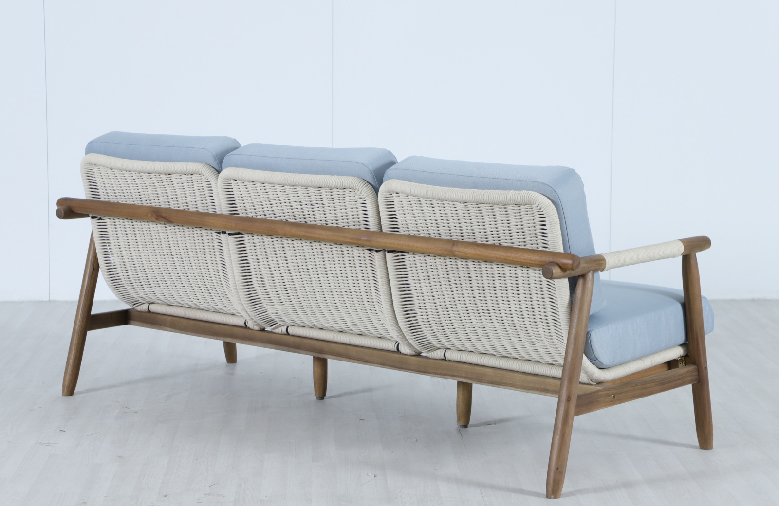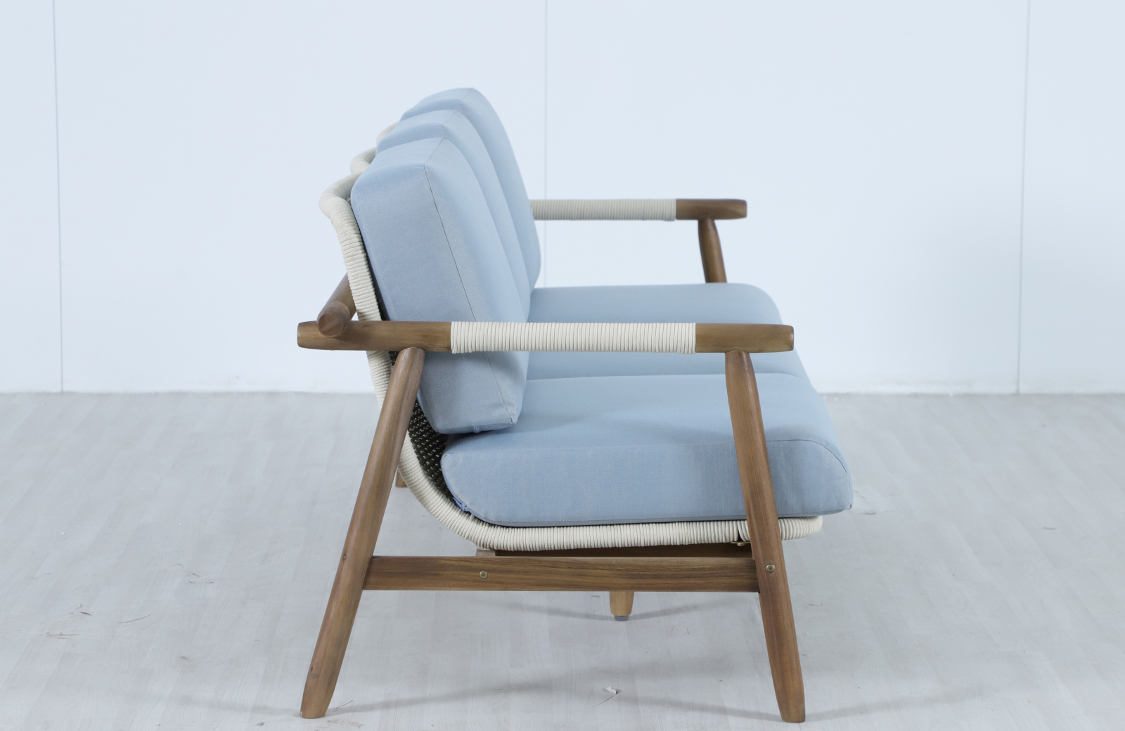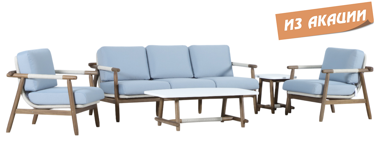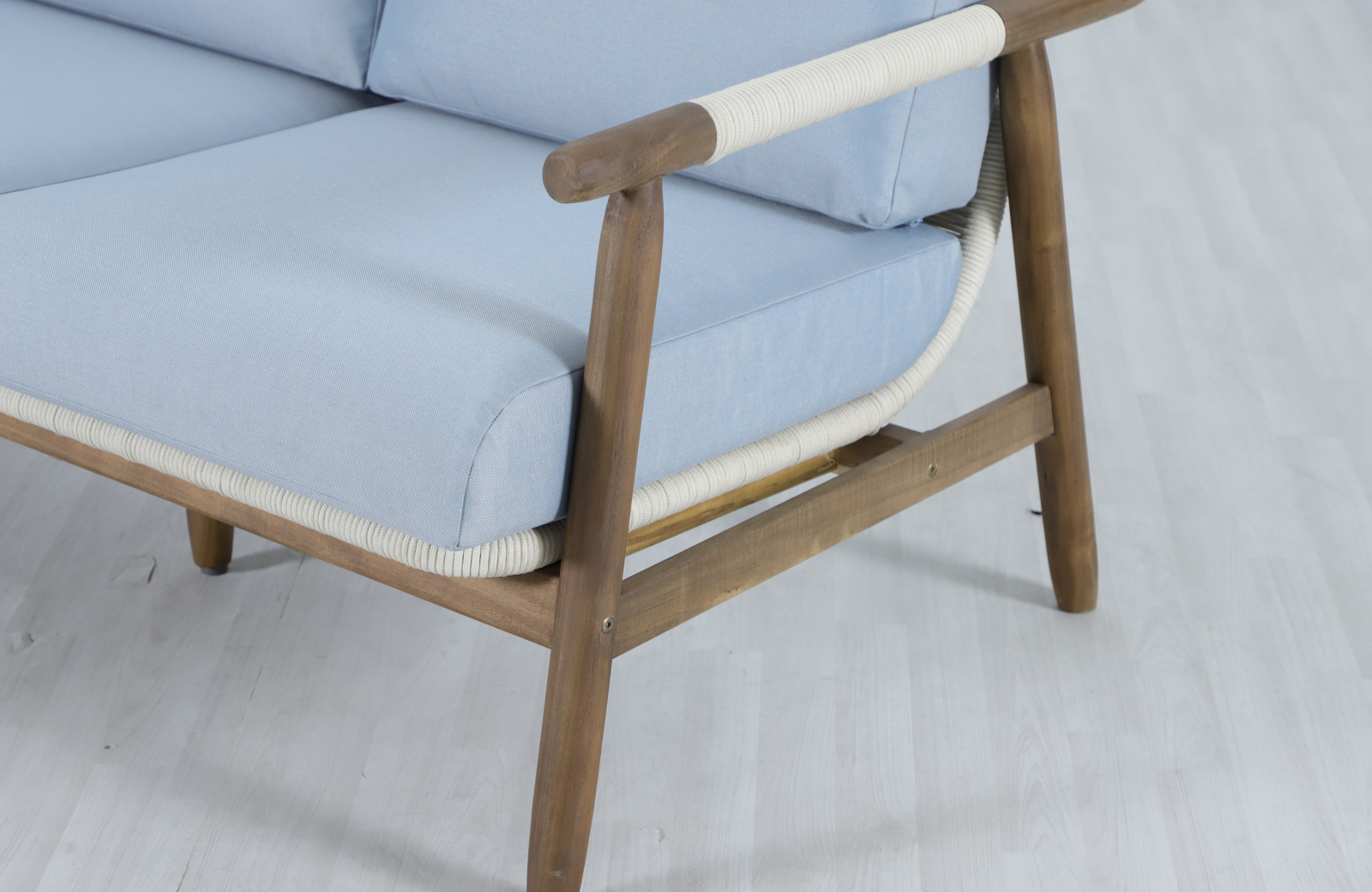 Apoyo - это стильная коллекция уличной мебели из массива АКАЦИИ, в которой сочетаются натуральное верёвочное (роуп) плетение, тёплая текстура дерева и комфортные подушки. Комплект для отдыха состоит из трехместного дивана, двух комфортных кресел и двух журнальных столиков. Превосходное решение для террасы или веранды, подходящее для тех, кто ценит долговечность и эстетический вид уличной мебели