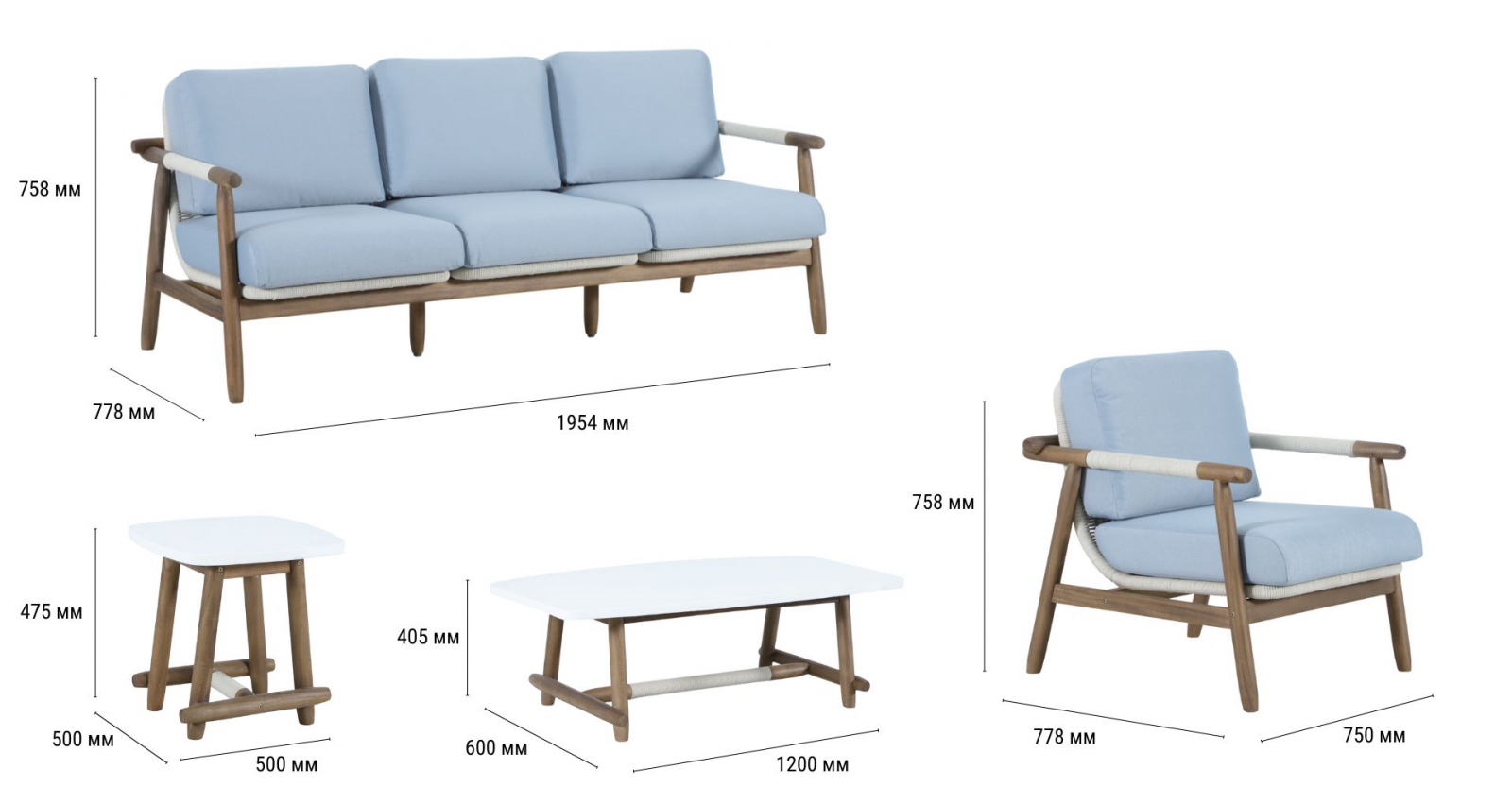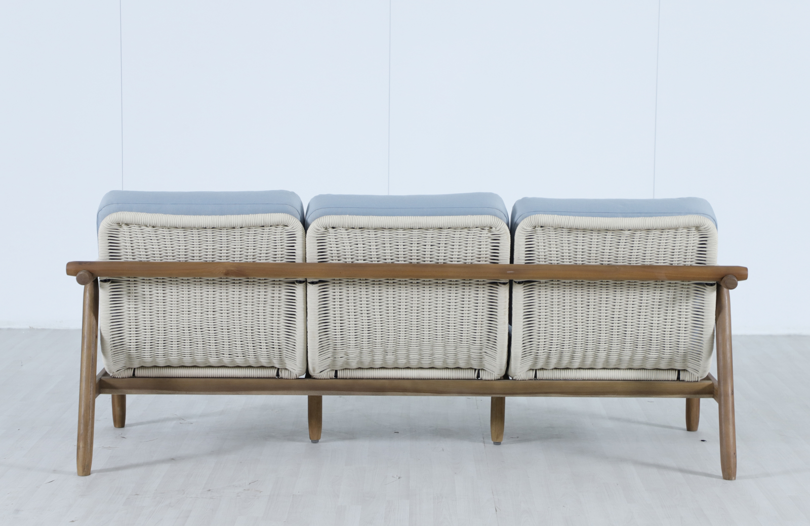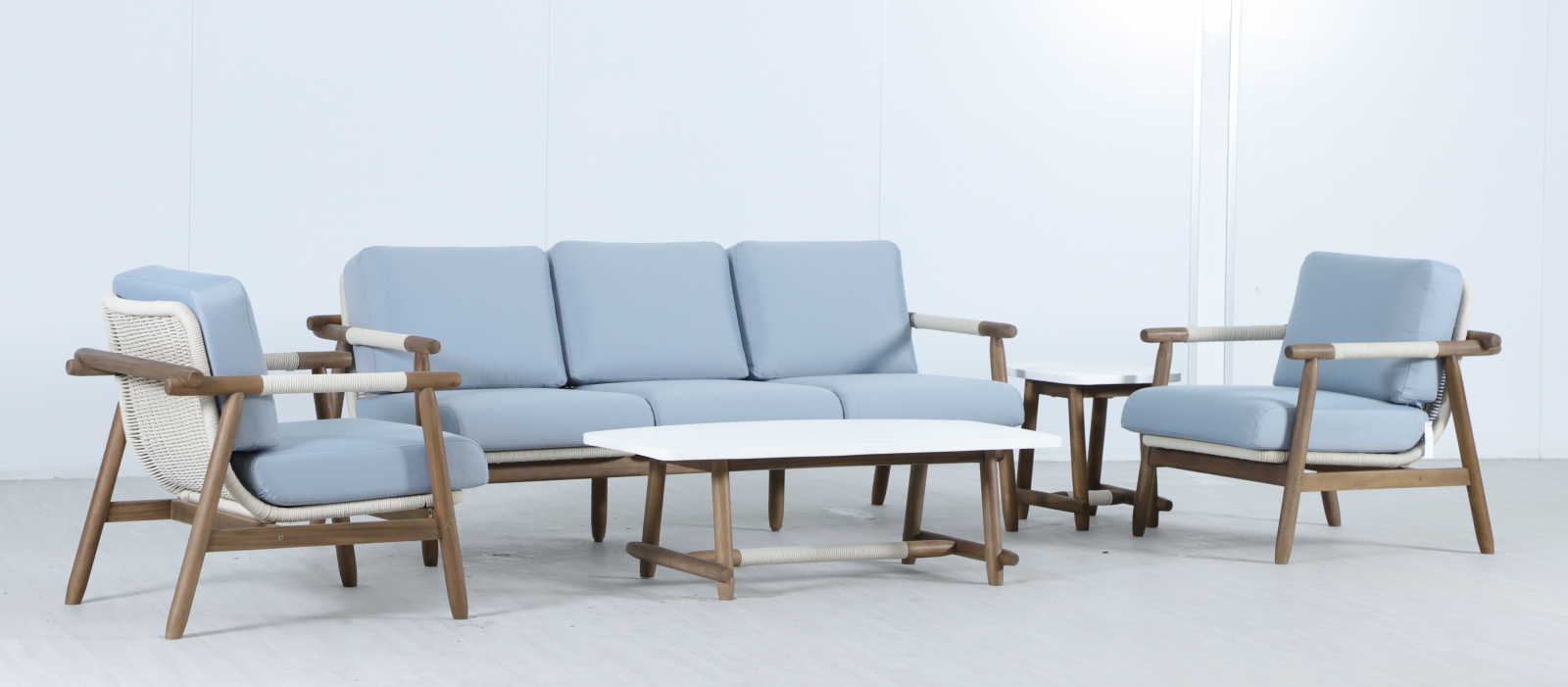 Apoyo - это стильная коллекция уличной мебели из массива АКАЦИИ, в которой сочетаются натуральное верёвочное (роуп) плетение, тёплая текстура дерева и комфортные подушки. Комплект для отдыха состоит из трехместного дивана, двух комфортных кресел и двух журнальных столиков. Превосходное решение для террасы или веранды, подходящее для тех, кто ценит долговечность и эстетический вид уличной мебели