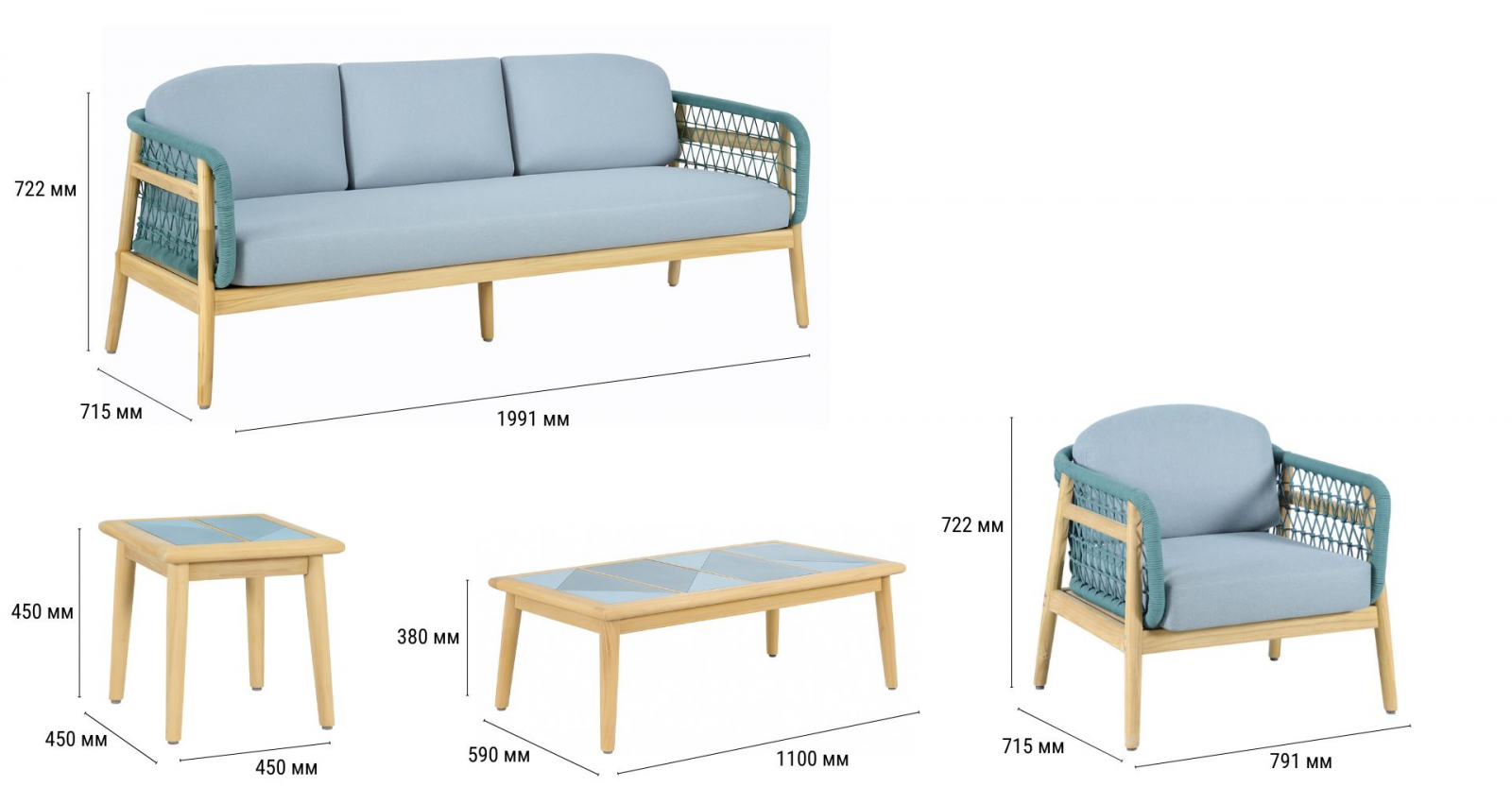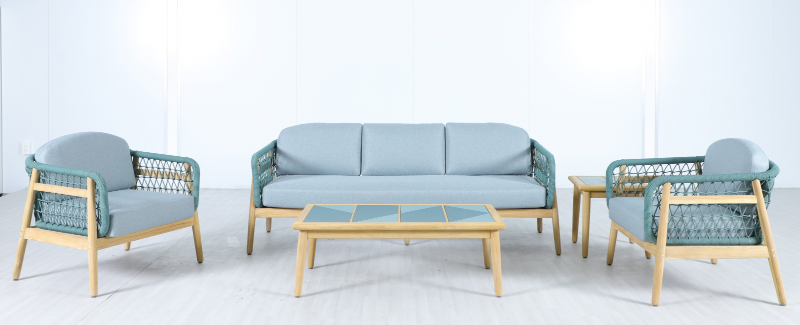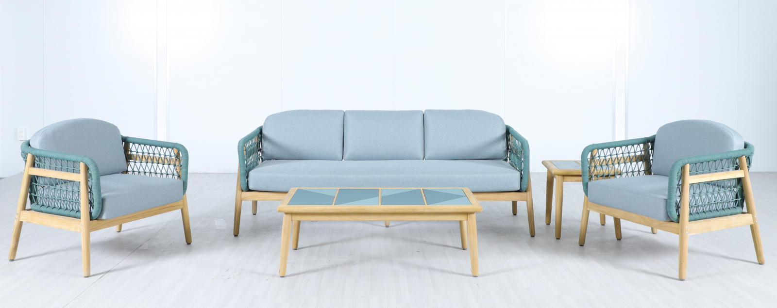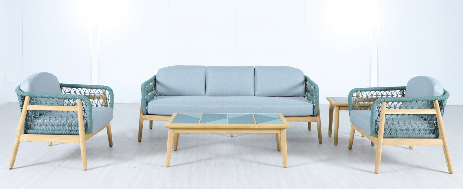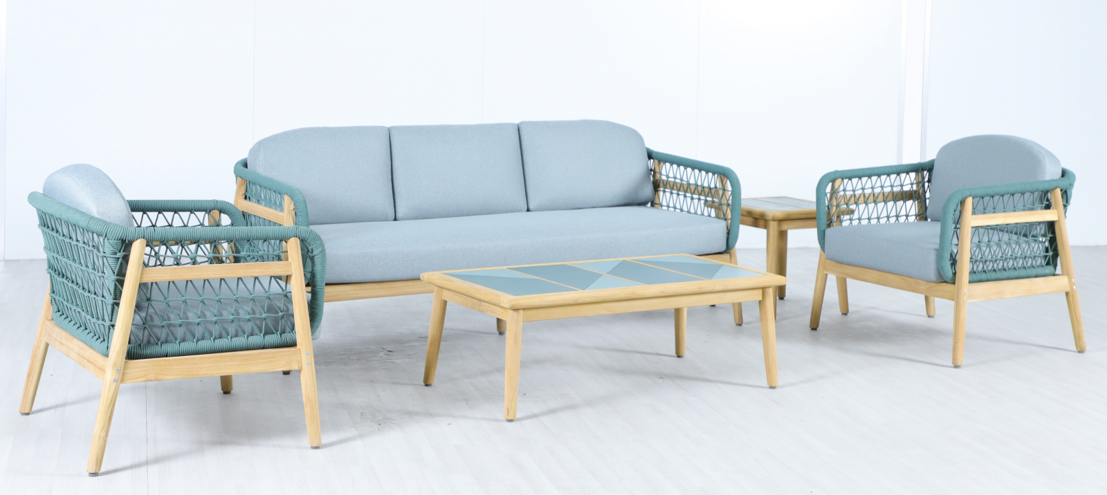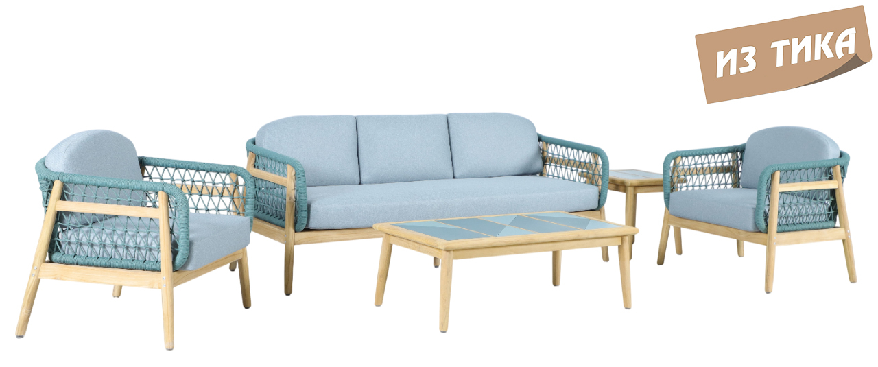 Cambria - это современная серия уличной мебели, объединяющая натуральную тёплую текстуру ТИКА, верёвочное плетение роуп и комфортные съёмные подушки. Комплект для отдыха состоит из трехместного дивана, двух комфортных кресел и двух журнальных столиков. Коллекция разработана для открытых пространств - террас, веранд и садовых зон отдыха и ориентирована на тех, кто ценит долговечность, премиальный вид и минимальный уход.