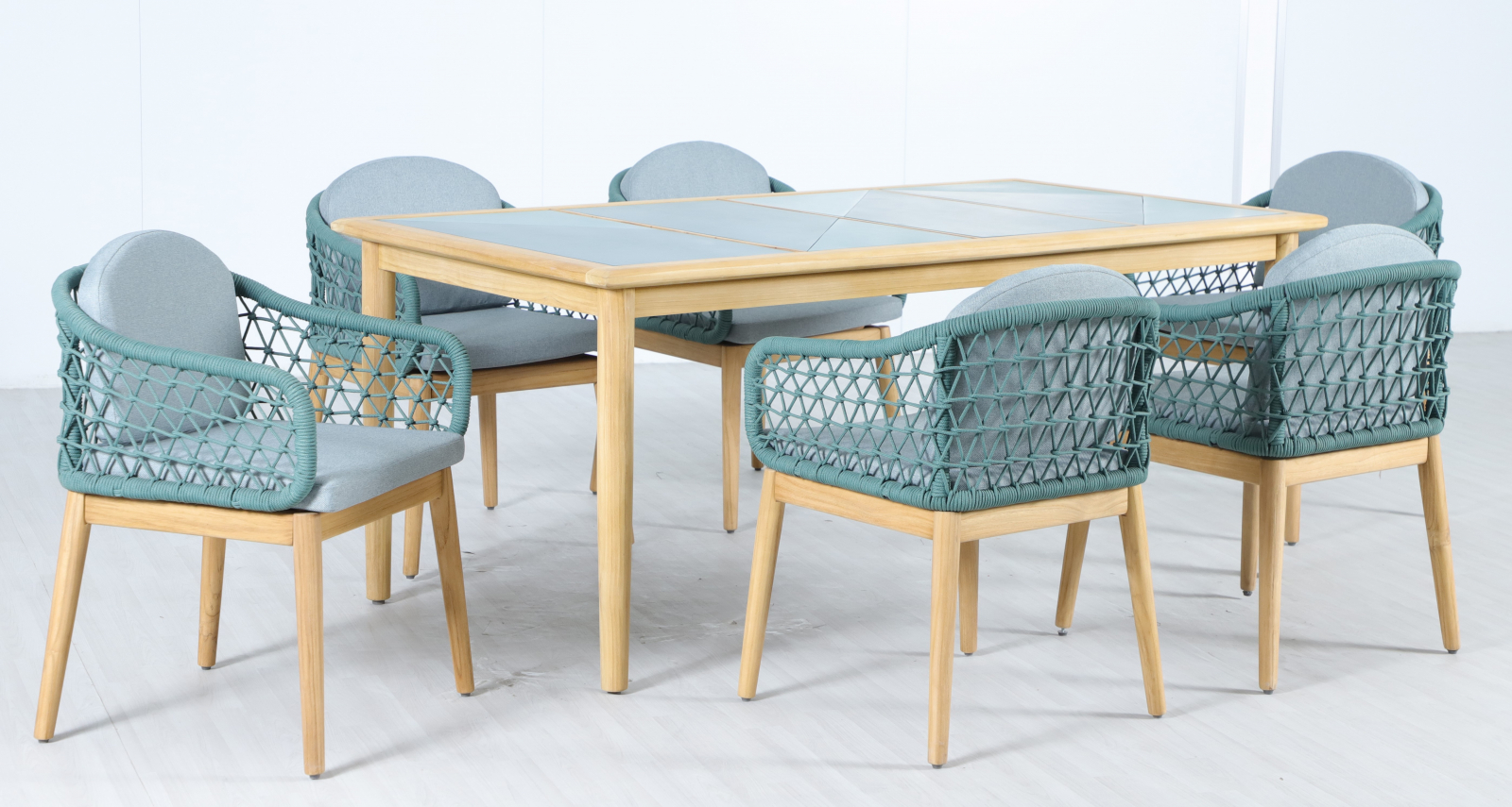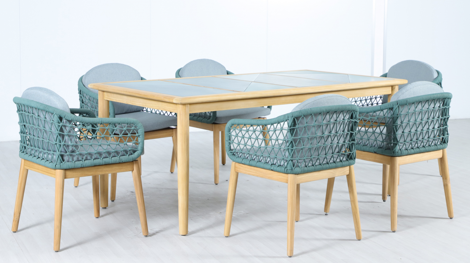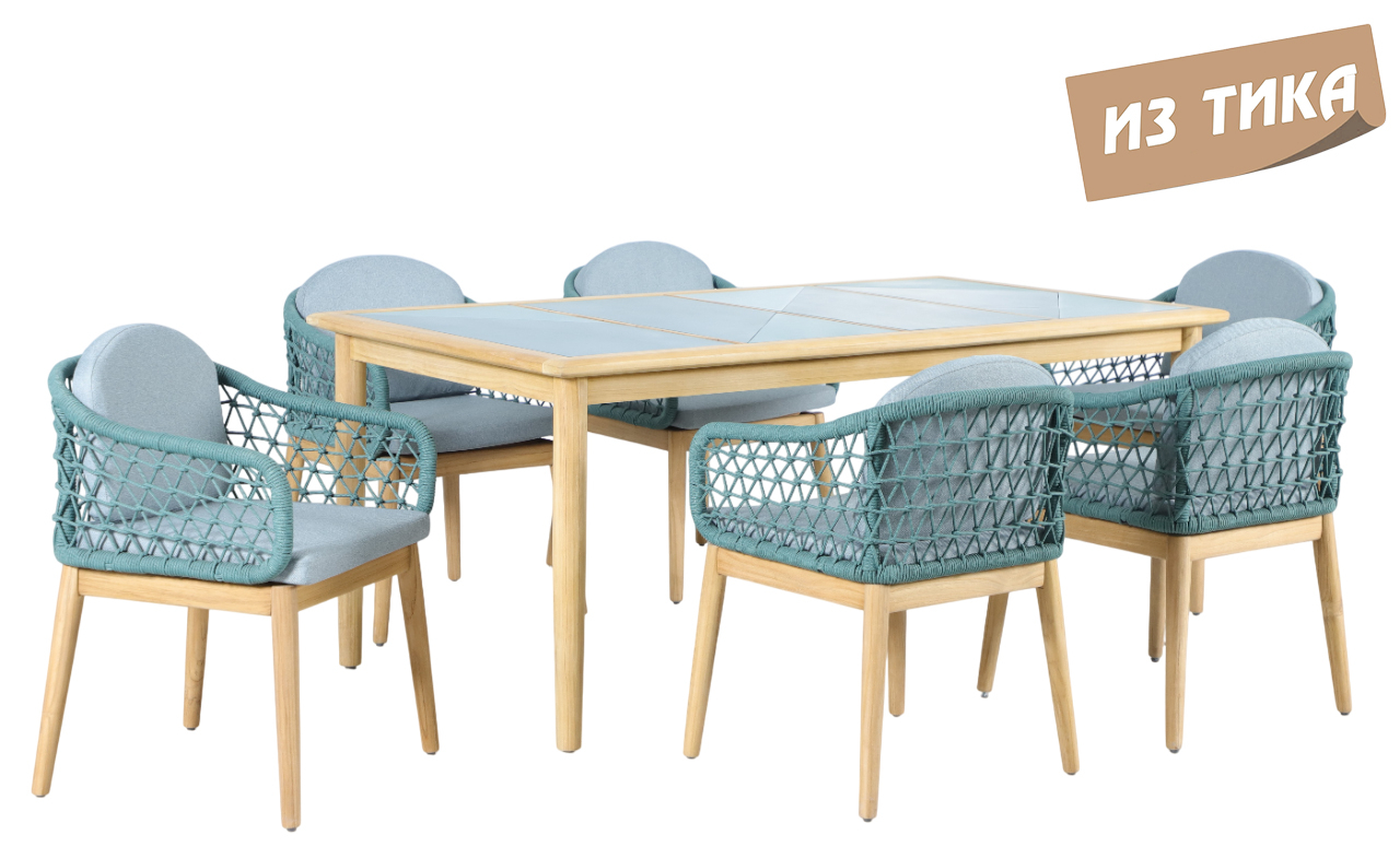 Обеденная группа Cambria на 6 персон - это современная серия уличной мебели, объединяющая натуральную тёплую текстуру ТИКА, верёвочное плетение роуп и комфортные съёмные подушки. Коллекция разработана для открытых пространств - террас, веранд и садовых зон отдыха и ориентирована на тех, кто ценит долговечность, премиальный вид и минимальный уход.