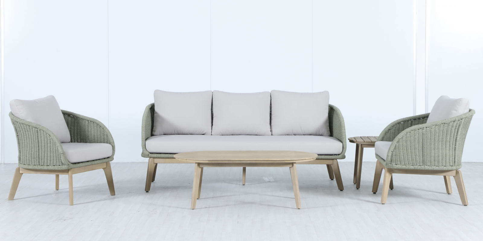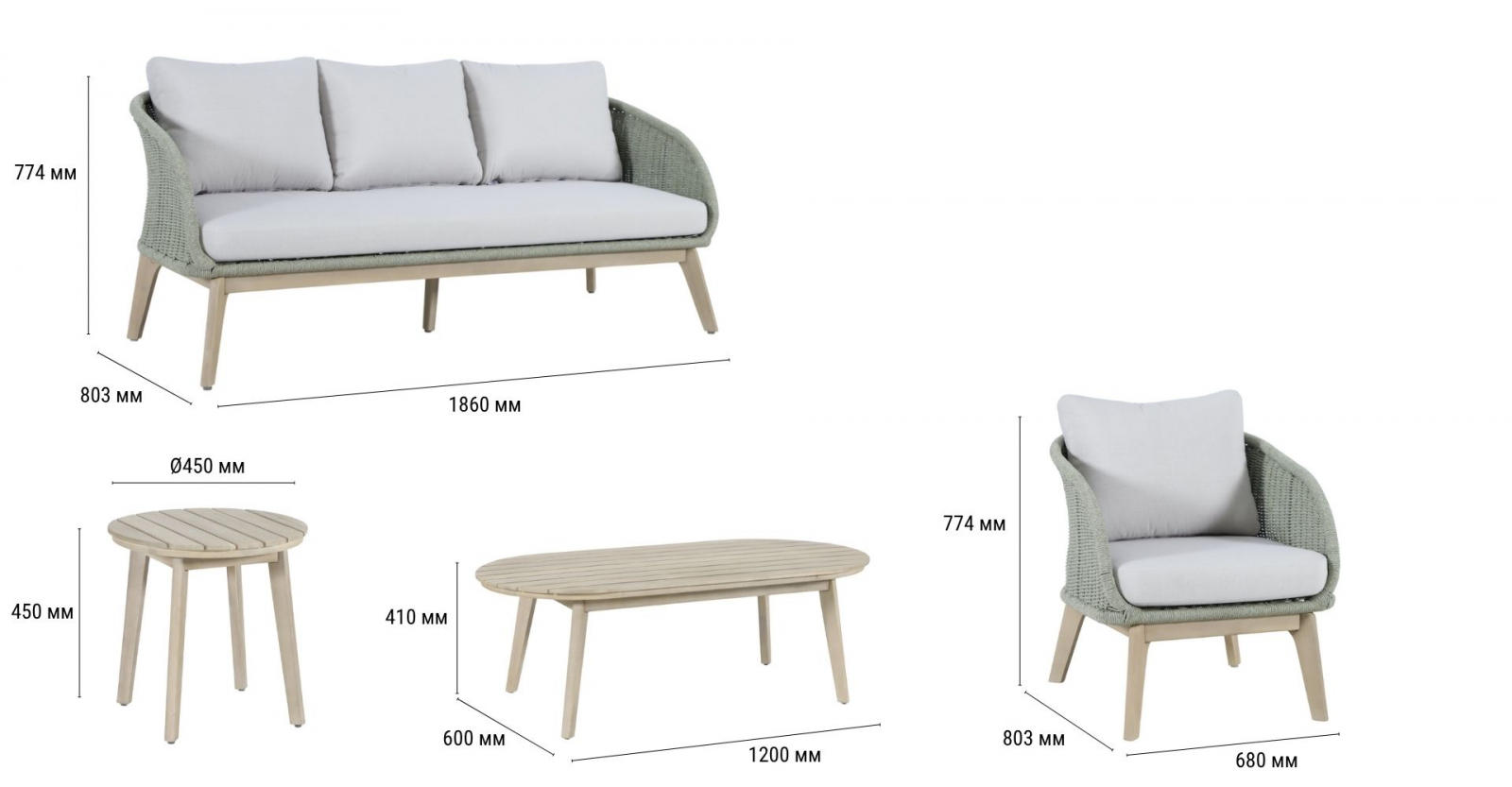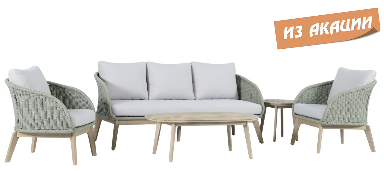 Madrague - это элегантная коллекция уличной мебели из АКАЦИИ, выполненная в комбинации веревочного плетения роуп, акации и комплектом устойчивых к погоде подушек. Комплект для отдыха состоит из трехместного дивана, двух комфортных кресел и двух журнальных столиков. Идеальна для террасы, веранды или комфортной зоны на открытом воздухе - сочетает эстетичный внешний вид, прочность и простой уход.