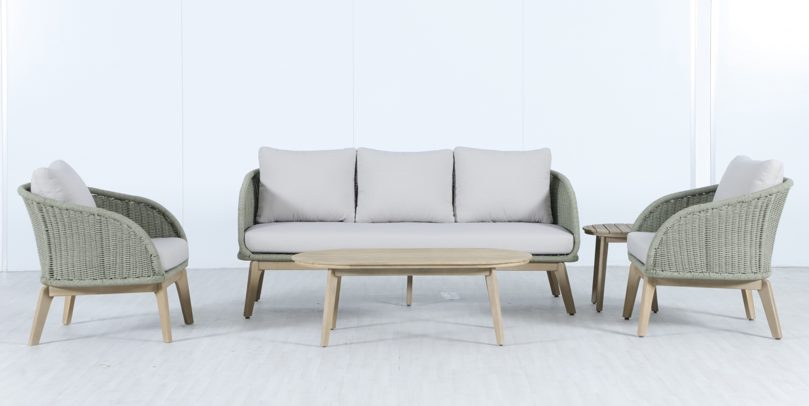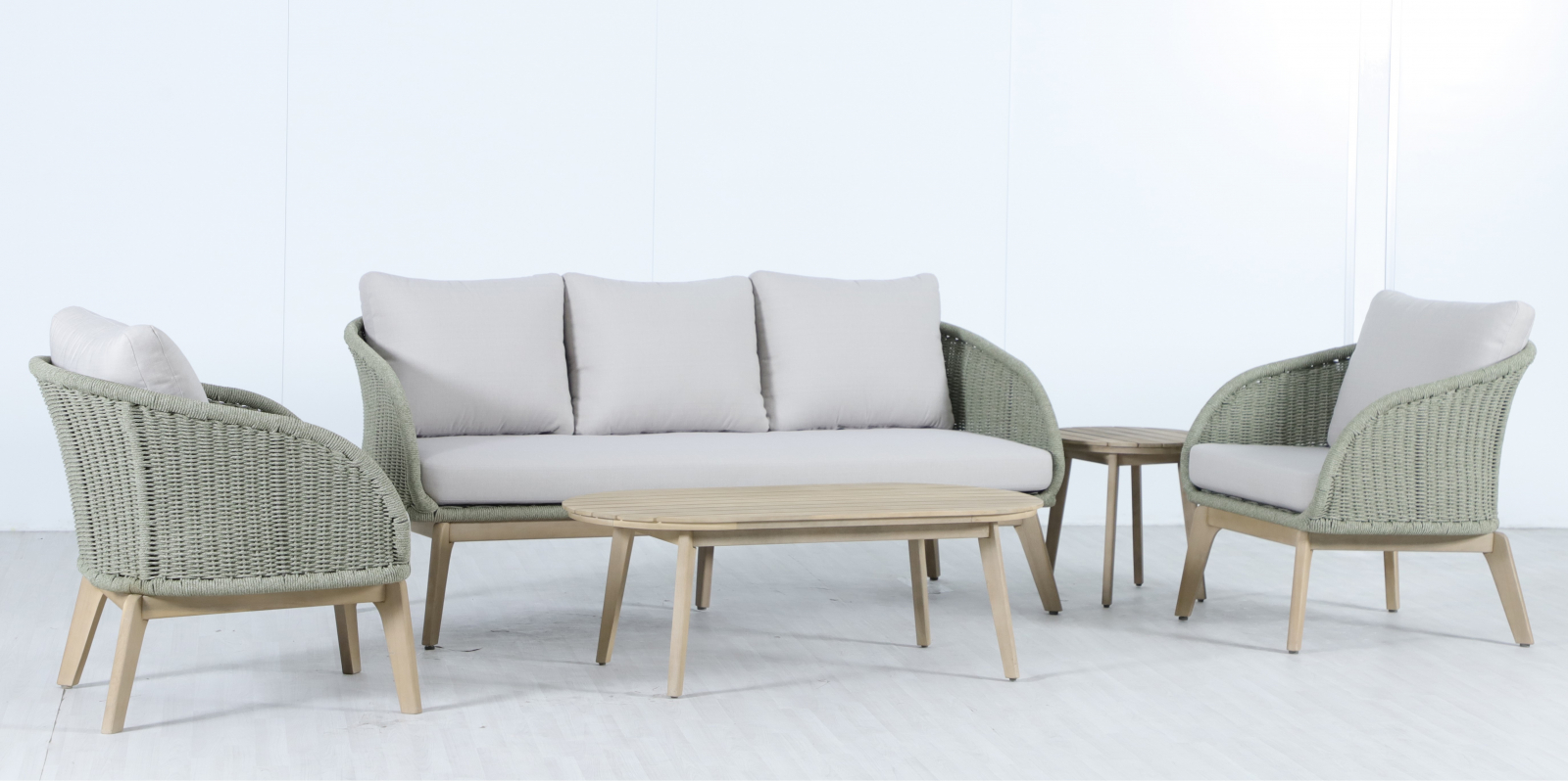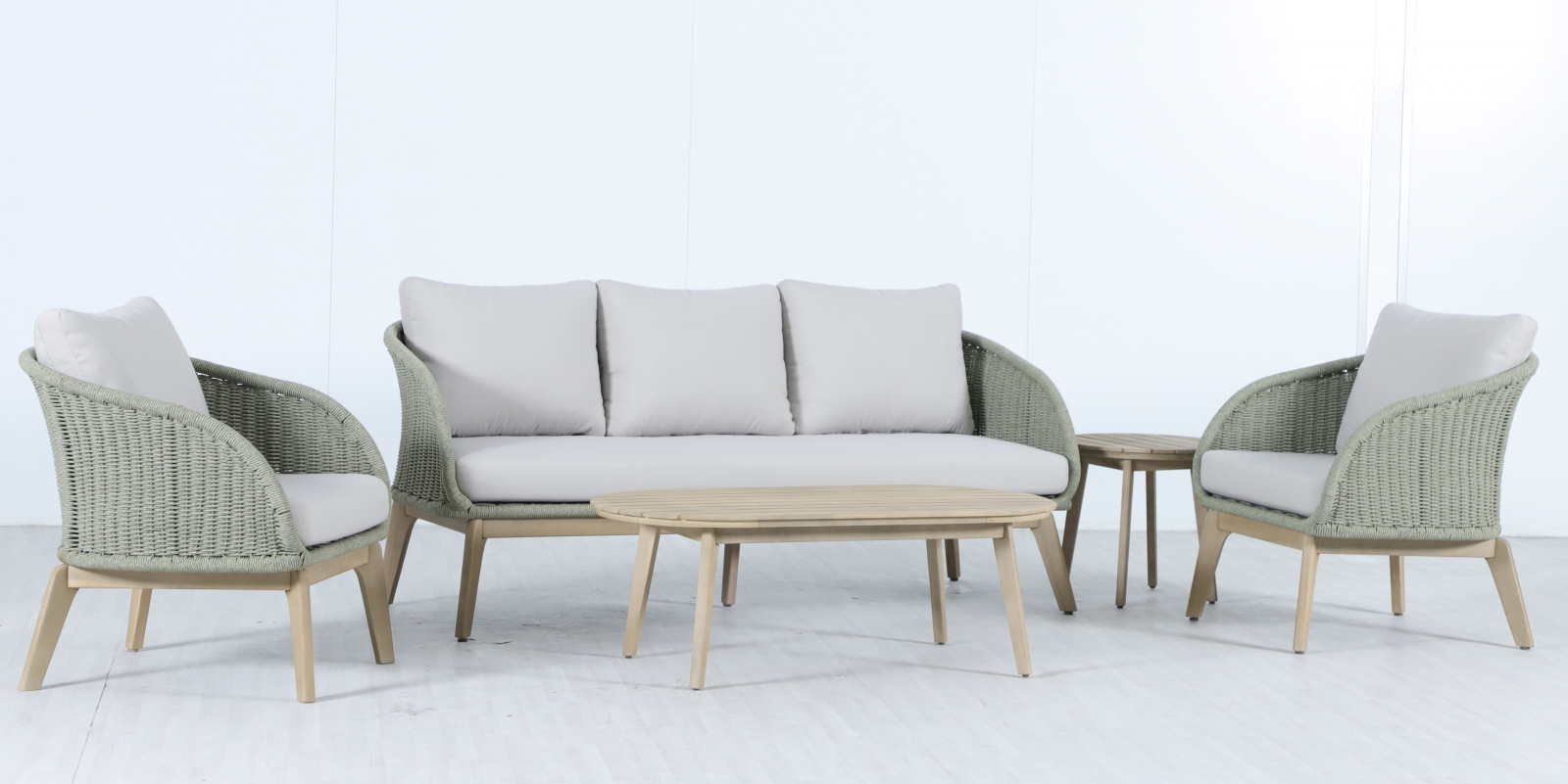 Madrague - это элегантная коллекция уличной мебели из АКАЦИИ, выполненная в комбинации веревочного плетения роуп, акации и комплектом устойчивых к погоде подушек. Комплект для отдыха состоит из трехместного дивана, двух комфортных кресел и двух журнальных столиков. Идеальна для террасы, веранды или комфортной зоны на открытом воздухе - сочетает эстетичный внешний вид, прочность и простой уход.