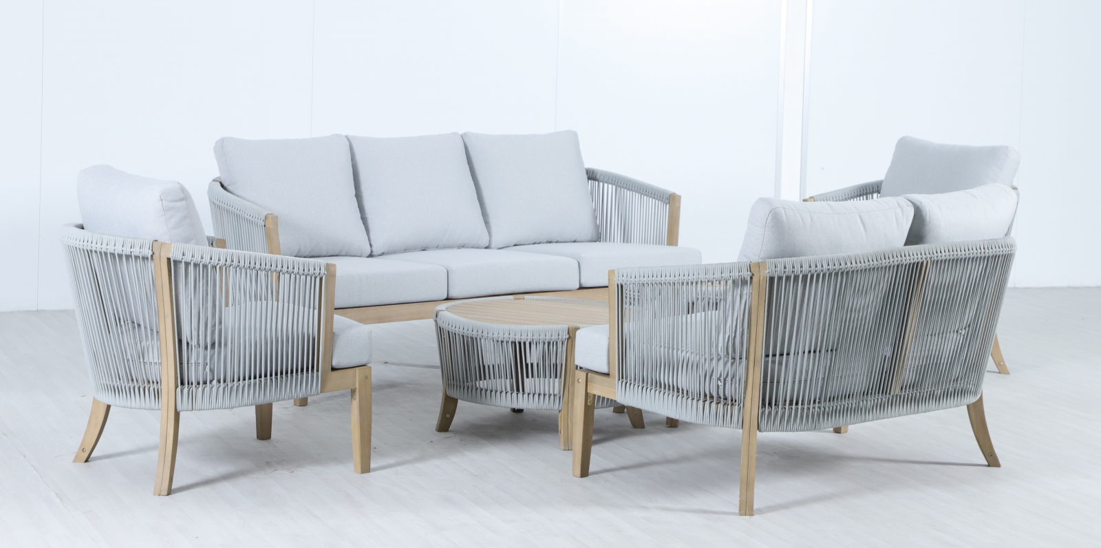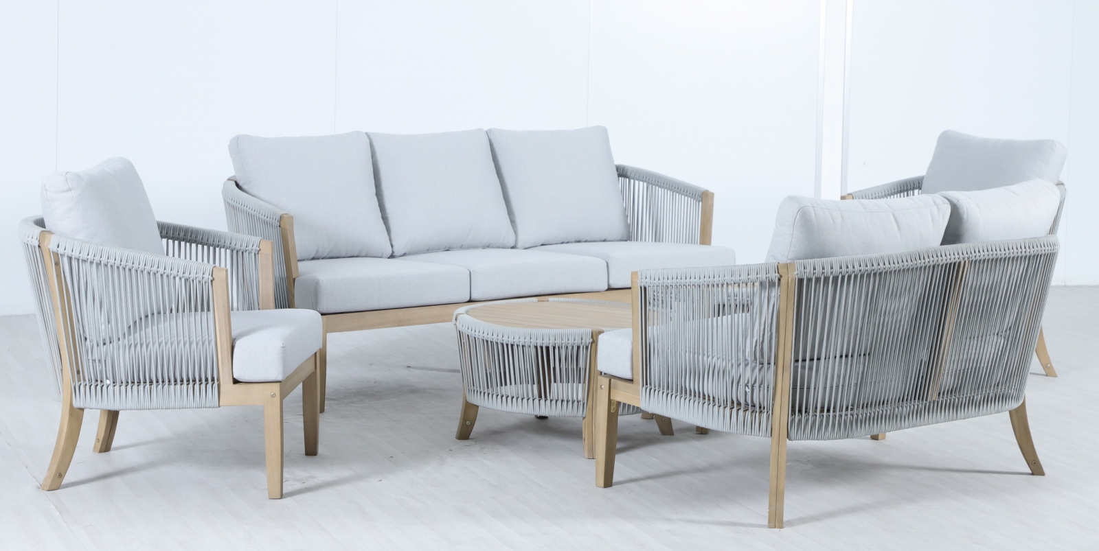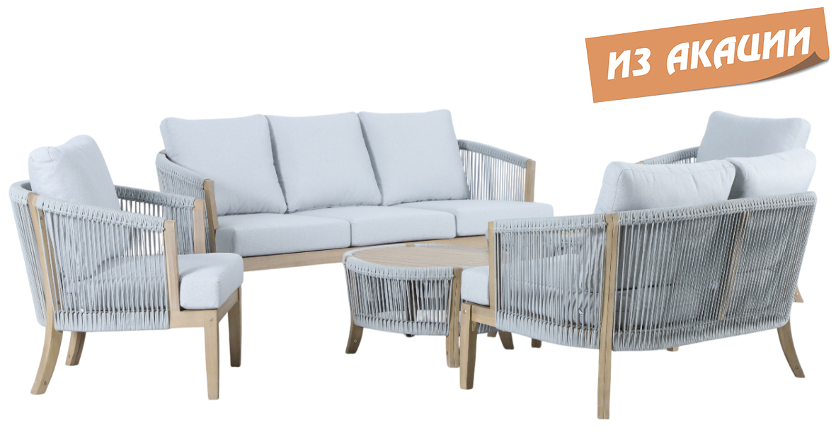 Коллекция Veneto - это линия уличной мебели из АКАЦИИ, объединяющая естественную теплоту дерева и стильные акценты из веревочного плетения роуп. Комплект для отдыха состоит из двухместного и трехместного диванов, двух комфортных кресел, двух журнальных столиков. Veneto создаёт цельную атмосферу на террасе, веранде или в зоне у бассейна. Концепция коллекции - эстетика природных материалов, продуманная эргономика и долговечность в условиях открытого воздуха.