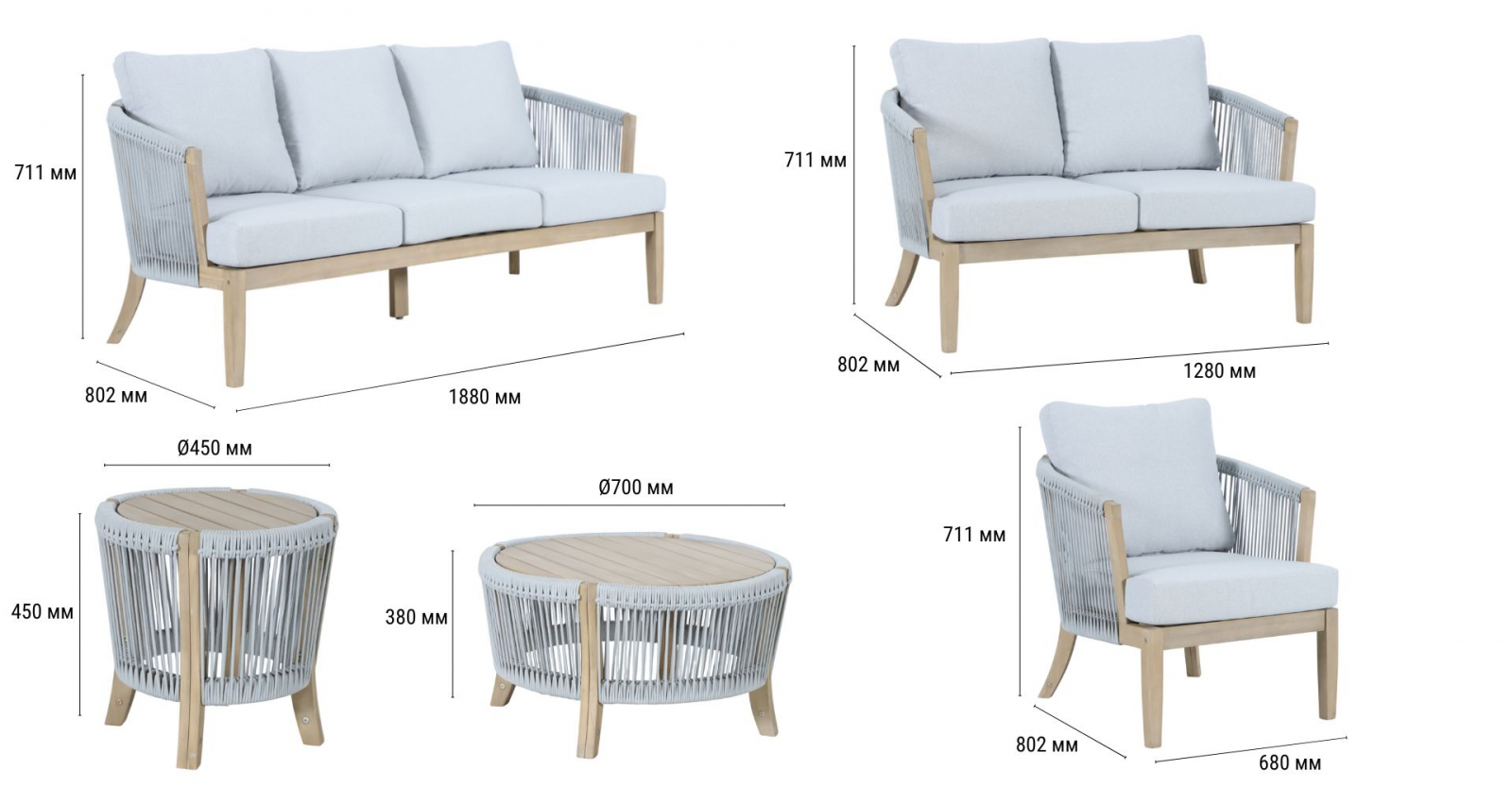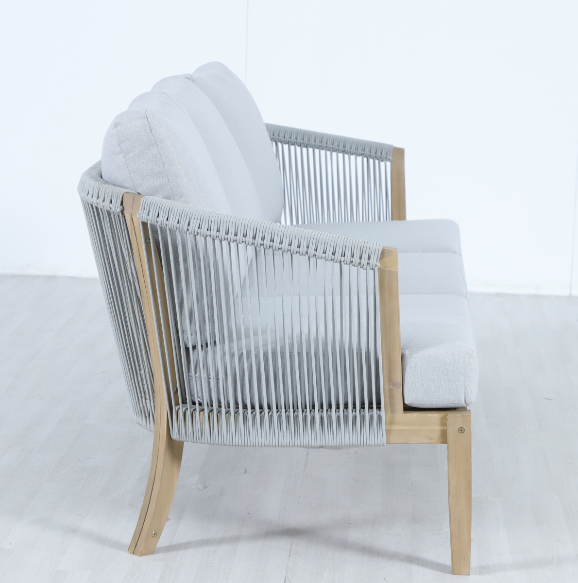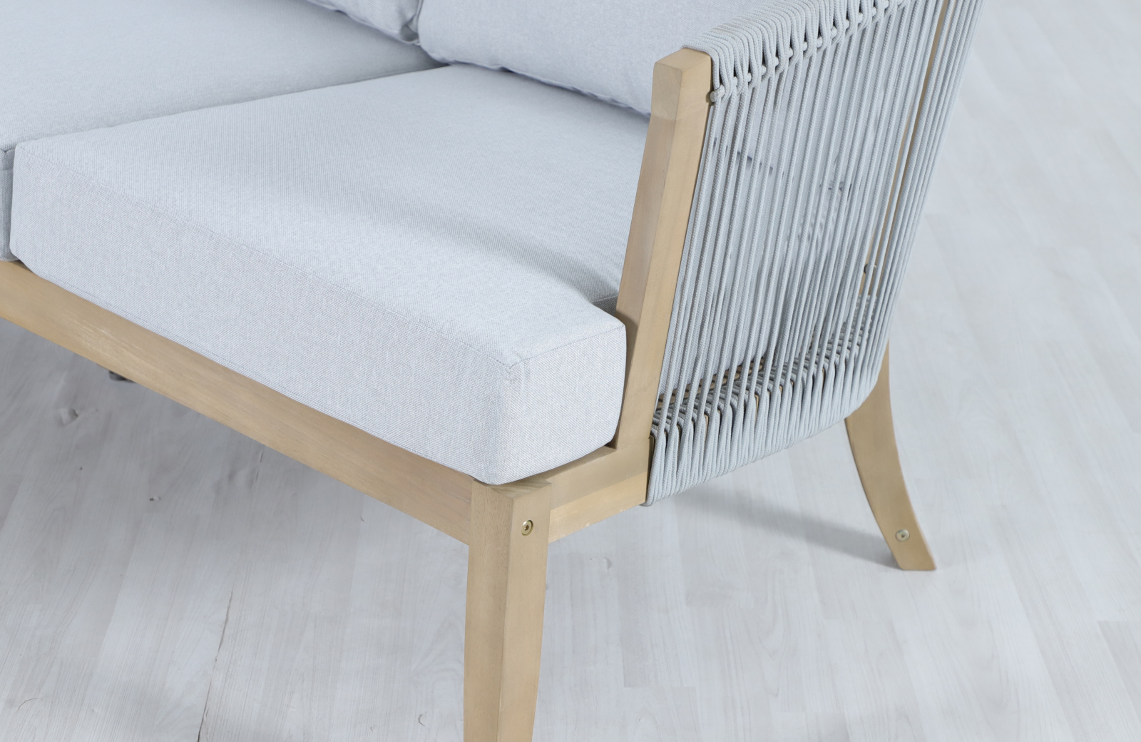 Коллекция Veneto - это линия уличной мебели из АКАЦИИ, объединяющая естественную теплоту дерева и стильные акценты из веревочного плетения роуп. Комплект для отдыха состоит из двухместного и трехместного диванов, двух комфортных кресел, двух журнальных столиков. Veneto создаёт цельную атмосферу на террасе, веранде или в зоне у бассейна. Концепция коллекции - эстетика природных материалов, продуманная эргономика и долговечность в условиях открытого воздуха.