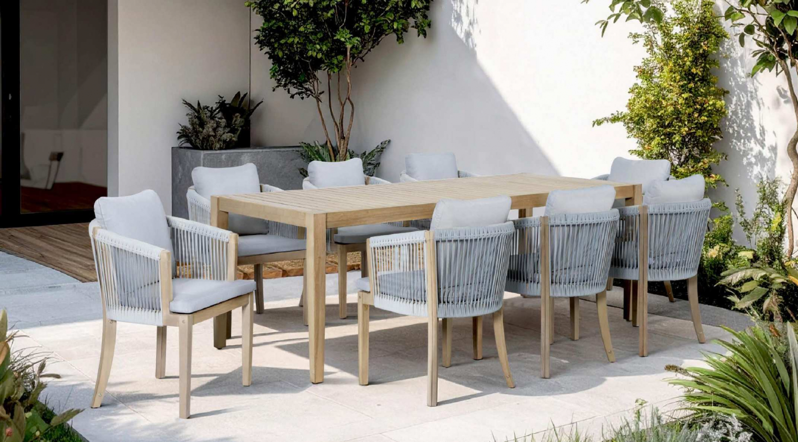 Обеденная группа Veneto на 8 персон - это линия уличной мебели из АКАЦИИ, объединяющая естественную теплоту дерева и стильные акценты из веревочного плетения роуп. Veneto создаёт цельную атмосферу на террасе, веранде или в зоне у бассейна. Концепция коллекции - эстетика природных материалов, продуманная эргономика и долговечность в условиях открытого воздуха.