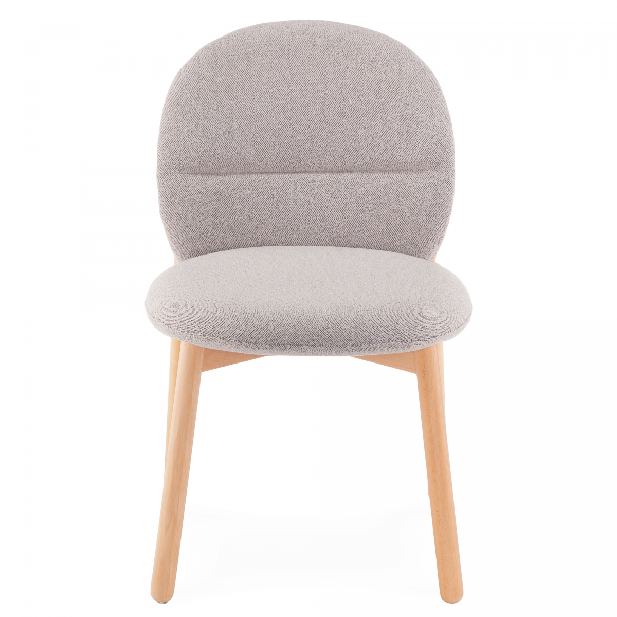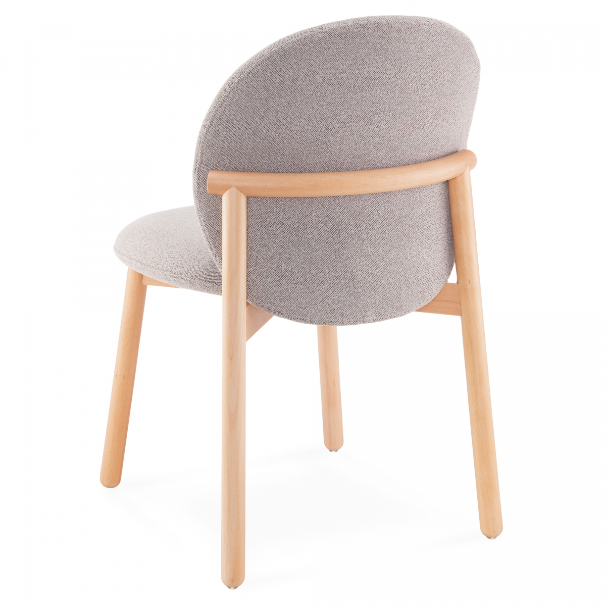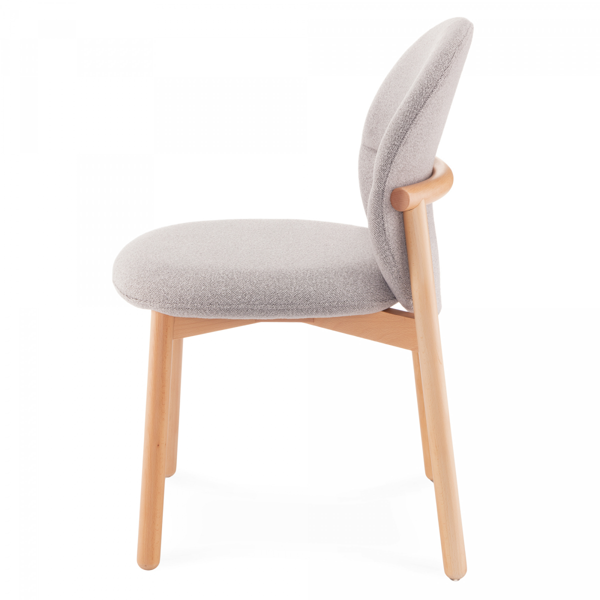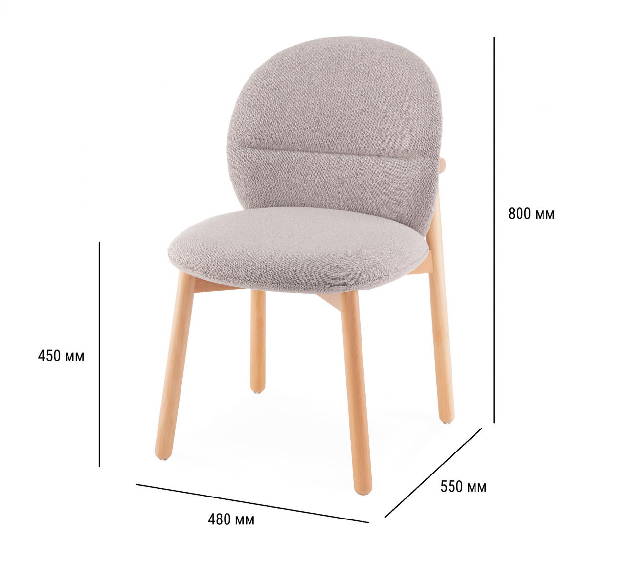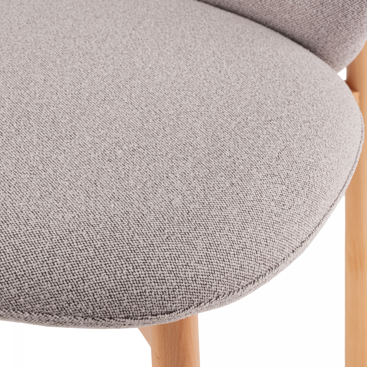 Мягкое сиденье, обитое тканью букле в нежном сером оттенке, приглашает к комфорту. Эта фактура, приятная на ощупь, создает игру света и тени, делая стул визуально объемным и тактильно привлекательным.