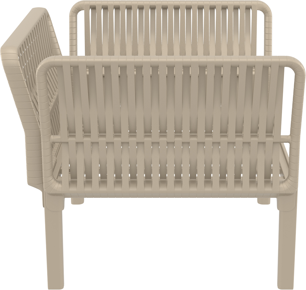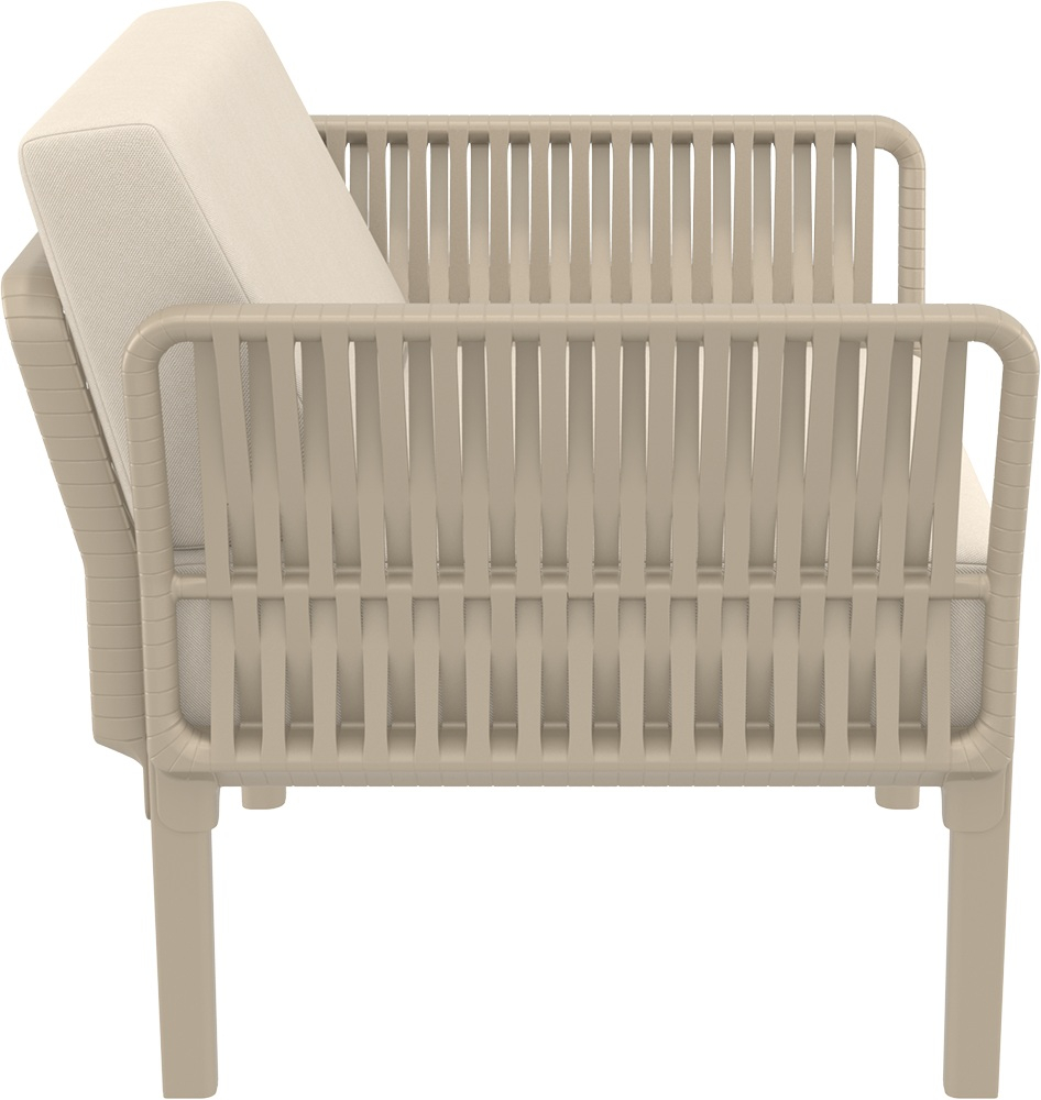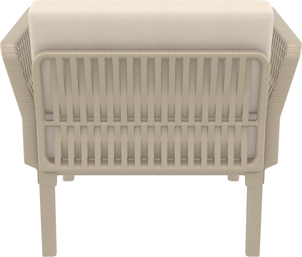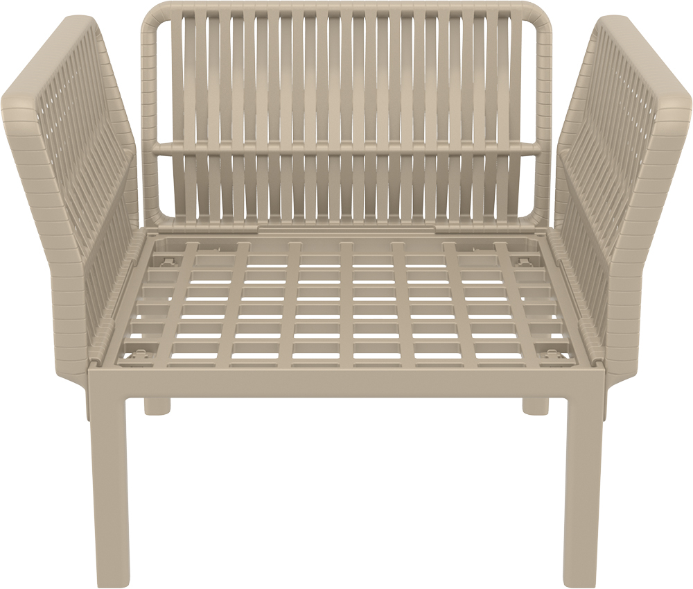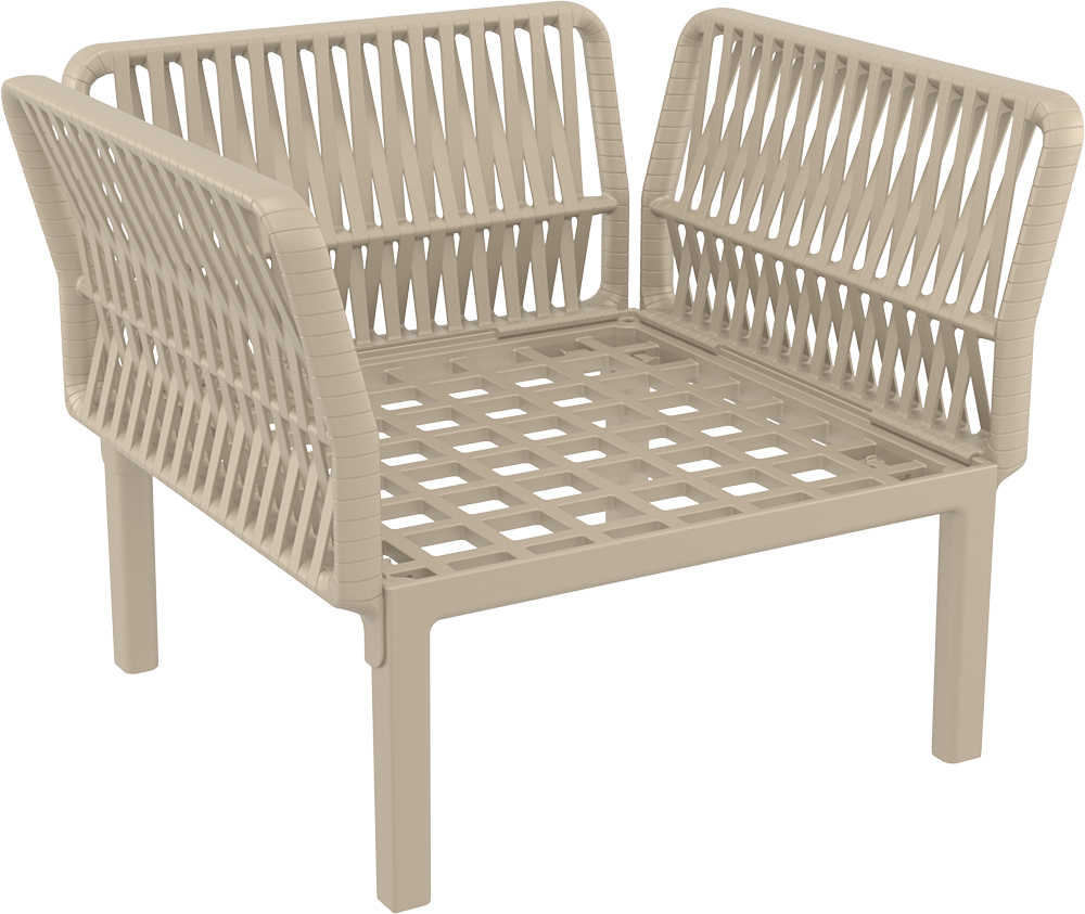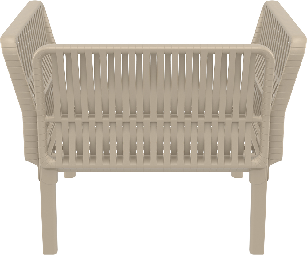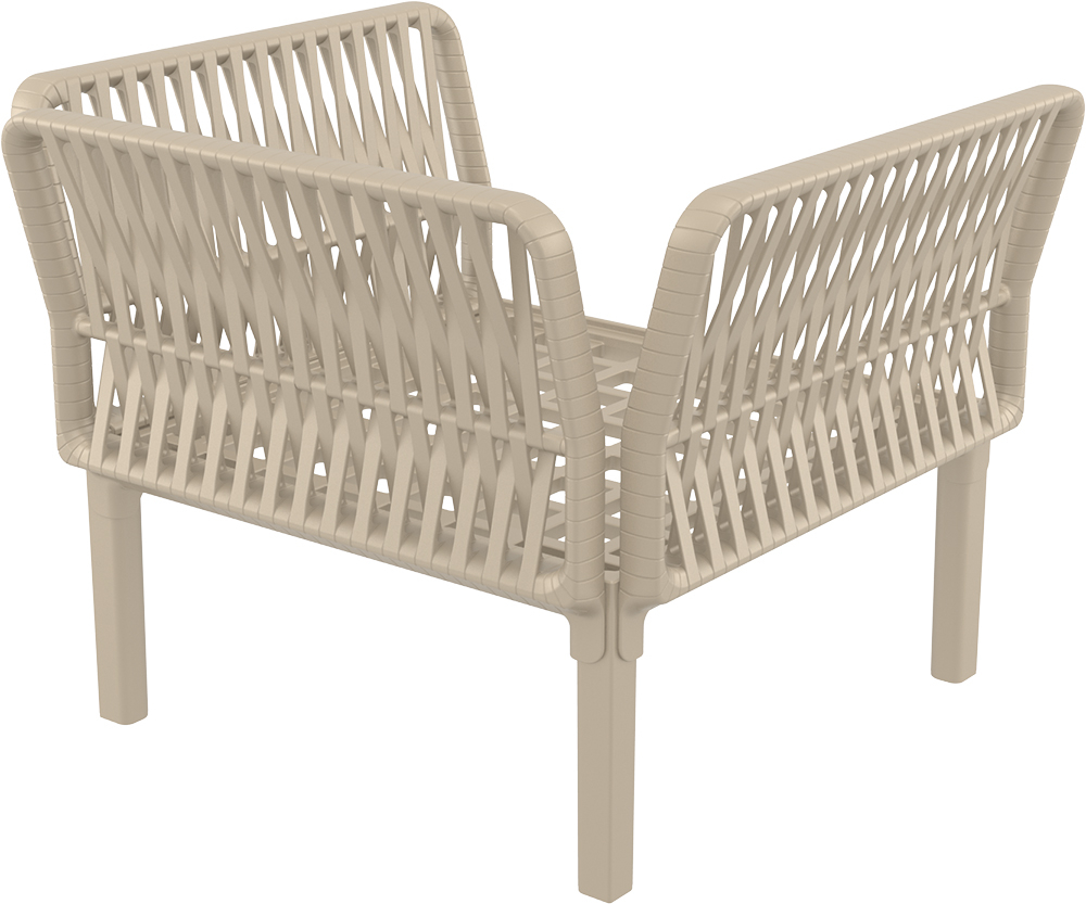 Кресло Portofino Lounge от турецкой фабрики Siesta Contract представляет собой стильное и надежное решение для уличного использования в сферах HoReCa и Contract. Выполненное из высококачественного полипропилена, армированного стекловолокном, кресло отличается исключительной прочностью и устойчивостью к воздействию внешней среды. Благодаря новейшим технологиям формования пластмасс под давлением, материал кресла устойчив к выцветанию и деформации, а нескользящие ножки обеспечивают безопасность и стабильность как внутри помещений, так и на улице. Особый акцент сделан на обволакивающей спинке, плавно переходящей в подлокотники, с 3D-эффектом плетения из плоского роупа, что придает креслу современный вид и визуально напоминает натуральное плетение, сохраняя при этом преимущества пластика.