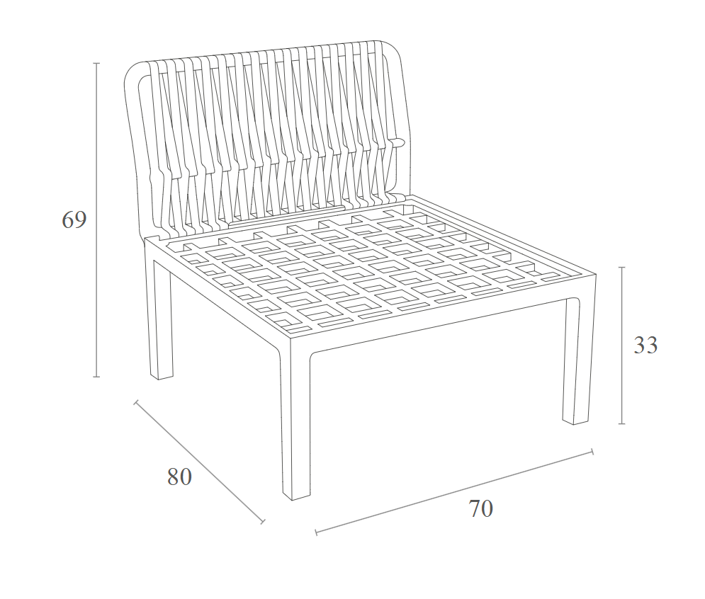 Благодаря новейшим технологиям формования пластмасс под давлением, материал устойчив к выцветанию и деформации, а нескользящие ножки обеспечивают безопасность и стабильность как внутри помещений, так и на улице. Особый акцент сделан на спинке с 3D-эффектом плетения из плоского роупа, что придает мебели современный вид и визуально напоминает натуральное плетение, сохраняя при этом преимущества пластика.