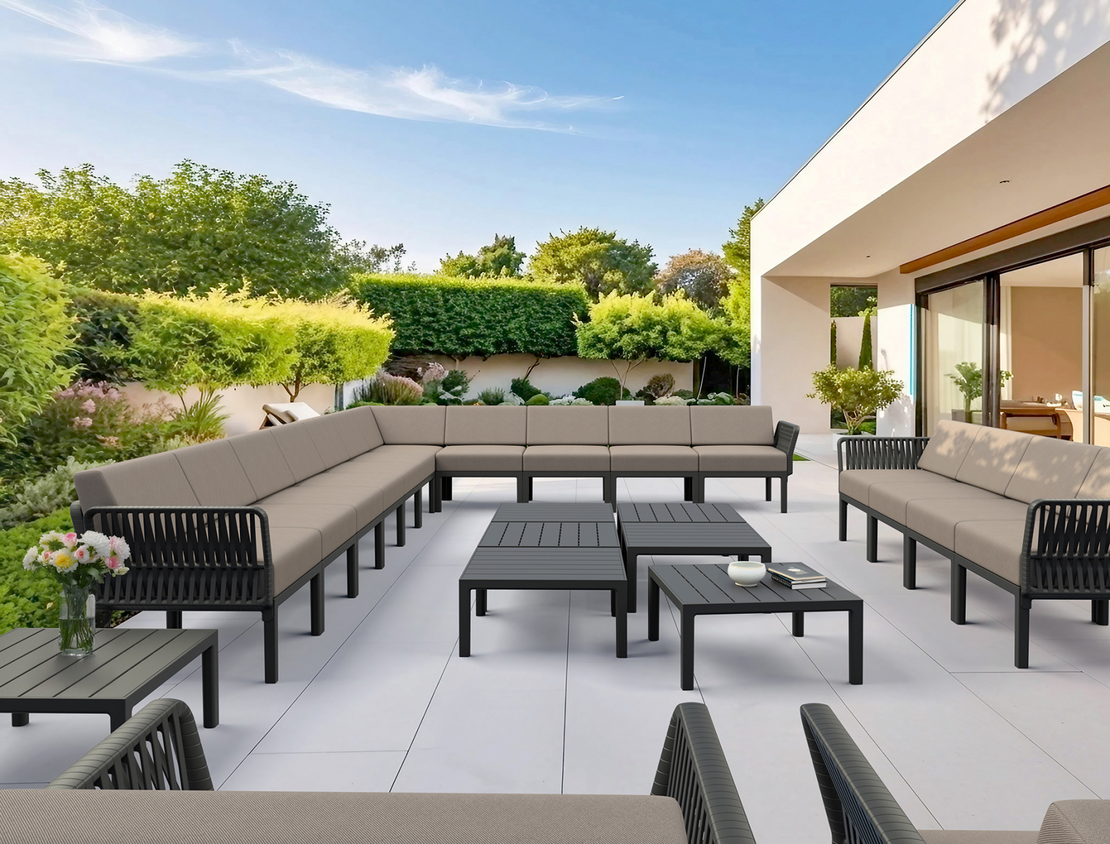 Пластиковая мебель серии Portofino с эффектом плетения станет отличным выбором для обстановки фуд-кортов, кафе, ресторанов и баров. Благодаря использованию высококачественных материалов, изделия долгое время не теряют своего привлекательного внешнего вида, даже несмотря на активную эксплуатацию.