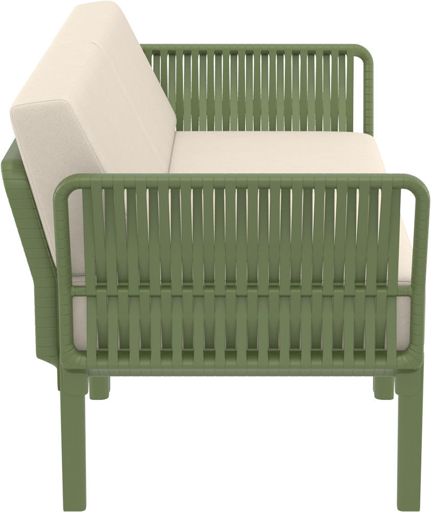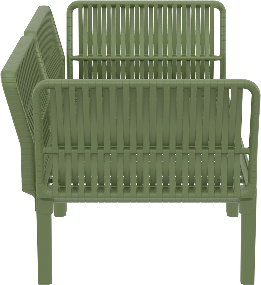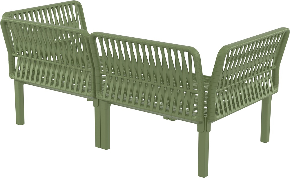 Диван Portofino Lounge от турецкой фабрики Siesta Contract представляет собой стильное и надежное решение для уличного использования в сферах HoReCa и Contract. Выполненный из высококачественного полипропилена, армированного стекловолокном, диван отличается исключительной прочностью и устойчивостью к воздействию внешней среды. Благодаря новейшим технологиям формования пластмасс под давлением, материал дивана устойчив к выцветанию и деформации, а нескользящие ножки обеспечивают безопасность и стабильность как внутри помещений, так и на улице. Особый акцент сделан на обволакивающей спинке, плавно переходящей в подлокотники, с 3D-эффектом плетения из плоского роупа, что придает дивану современный вид и визуально напоминает натуральное плетение, сохраняя при этом преимущества пластика.
