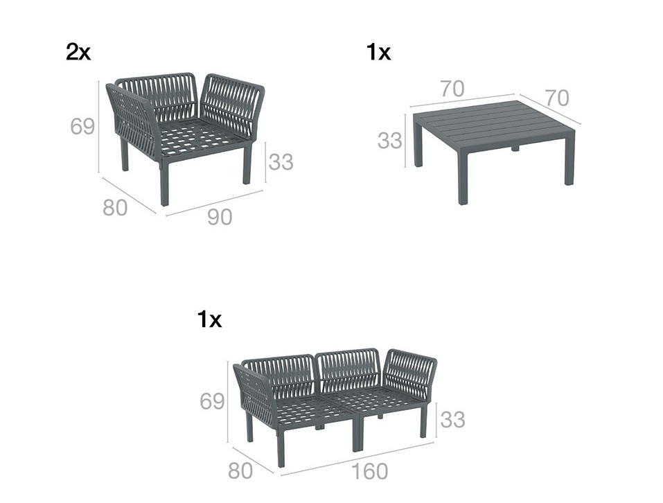 Комплект Portofino Lounge Set от турецкой фабрики Siesta Contract представляет собой стильное и надежное решение для уличного использования в сферах HoReCa и Contract. Выполненная из высококачественного полипропилена, армированного стекловолокном, мебель комплекта отличается исключительной прочностью и устойчивостью к воздействию внешней среды. Благодаря новейшим технологиям формования пластмасс под давлением, материал устойчив к выцветанию и деформации, а нескользящие ножки обеспечивают безопасность и стабильность как внутри помещений, так и на улице. Особый акцент сделан на обволакивающей спинке, плавно переходящей в подлокотники, с 3D-эффектом плетения из плоского роупа, что придает мебели современный вид и визуально напоминает натуральное плетение, сохраняя при этом преимущества пластика.