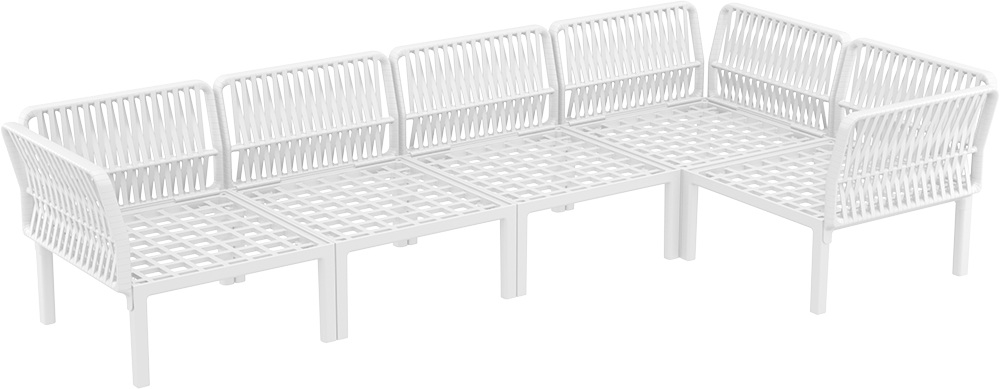 Комплект Portofino Lounge Corner Set от турецкой фабрики Siesta Contract представляет собой стильное и надежное решение для уличного использования в сферах HoReCa и Contract. Выполненная из высококачественного полипропилена, армированного стекловолокном, мебель комплекта отличается исключительной прочностью и устойчивостью к воздействию внешней среды. Благодаря новейшим технологиям формования пластмасс под давлением, материал устойчив к выцветанию и деформации, а нескользящие ножки обеспечивают безопасность и стабильность как внутри помещений, так и на улице. Особый акцент сделан на обволакивающей спинке, плавно переходящей в подлокотники, с 3D-эффектом плетения из плоского роупа, что придает мебели современный вид и визуально напоминает натуральное плетение, сохраняя при этом преимущества пластика.