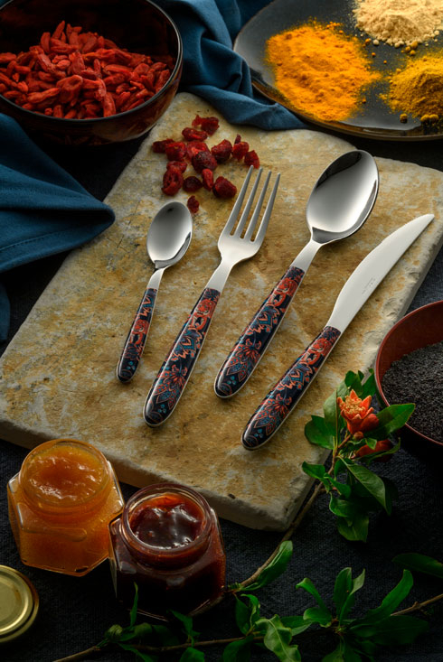Коллекция столовых приборов с культовым дизайном, характеризующимся строгим минимализмом. Декор с цветочными и анималистичными мотивами, выполненный методом непрямой сублимационной печати, вдохновлен восточными узорами роскошных и драгоценных шелковых тканей. Китай по-прежнему является крупнейшим производителем шелка и местом обитания тигра - величественного представителя семейства кошачьих и искусного охотника, находящегося под угрозой исчезновения. Пекин, столица Китайской Народной Республики, расположен на Великом шелковом пути.