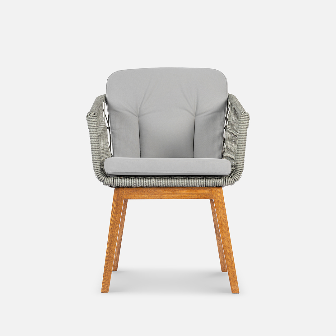 Конструкция кресла продумана для долговечной эксплуатации. Легкий алюминиевый каркас с порошковой окраской обеспечивает жесткость, а подушки из износостойкого олефина устойчивы к погодным условиям и быстро восстанавливают форму.