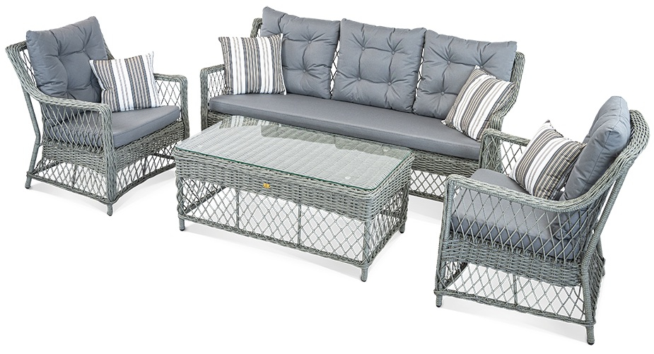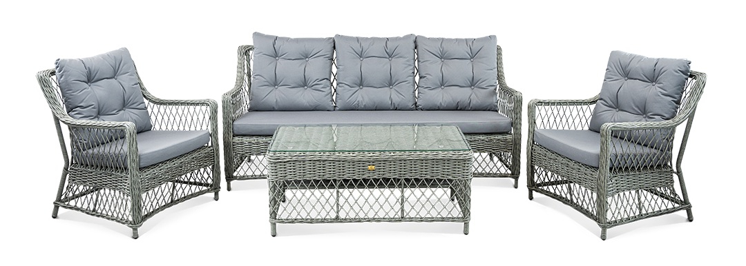 Цена на сайте указана за модель с плетением в цвете Лунный свет и обивкой подушек из ткани Mossle 990. Для уточнения всех возможных вариантов материала и цвета данного изделия обращайтесь к нашим менеджерам.