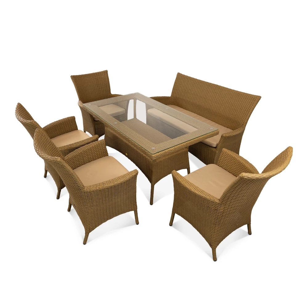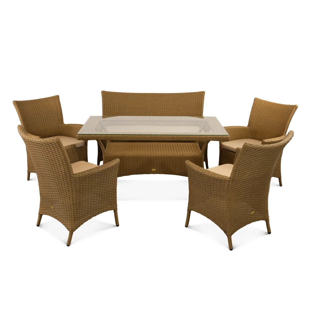 Диван Kipr - это гармония современного дизайна и коммерческой надежности. Модель построена на прочном цельносварном алюминиевом каркасе со стойкой порошковой окраской, который не боится коррозии и деформации. Декоративное плетение из искусственного ротанга неуязвимо для влаги, ультрафиолета и перепадов температур.
