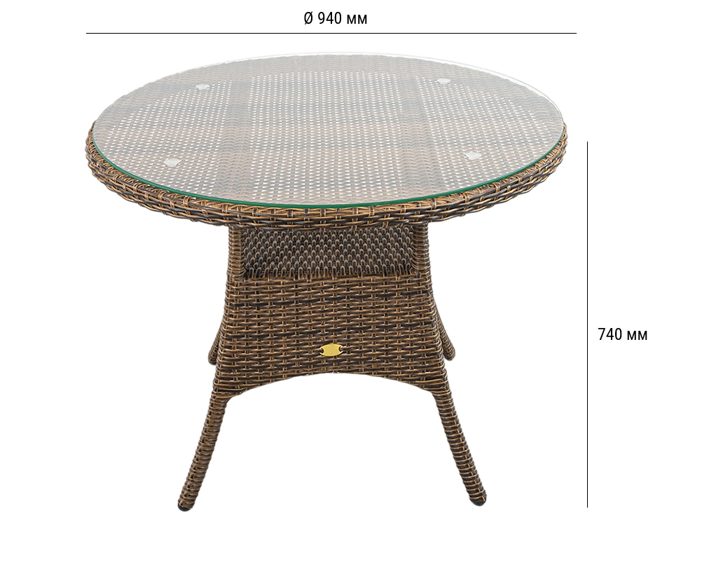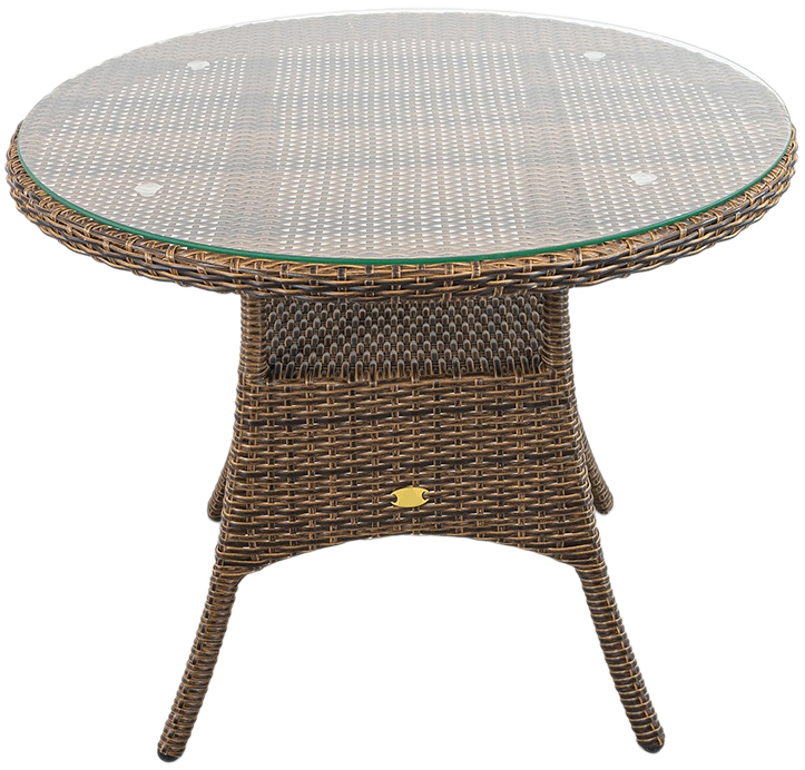 Стол Kipr круглой формы рассчитан на комфортное размещение четырех персон. Его прочная основа - цельносварной алюминиевый каркас с износостойким порошковым покрытием, дополненный долговечным плетением из искусственного ротанга. Практичная столешница из закаленного стекла легко вписывается в любой интерьер и неприхотлива в уходе.