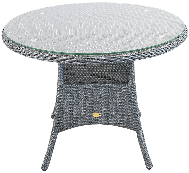 Стол Kipr круглой формы рассчитан на комфортное размещение четырех персон. Его прочная основа - цельносварной алюминиевый каркас с износостойким порошковым покрытием, дополненный долговечным плетением из искусственного ротанга. Практичная столешница из закаленного стекла легко вписывается в любой интерьер и неприхотлива в уходе.