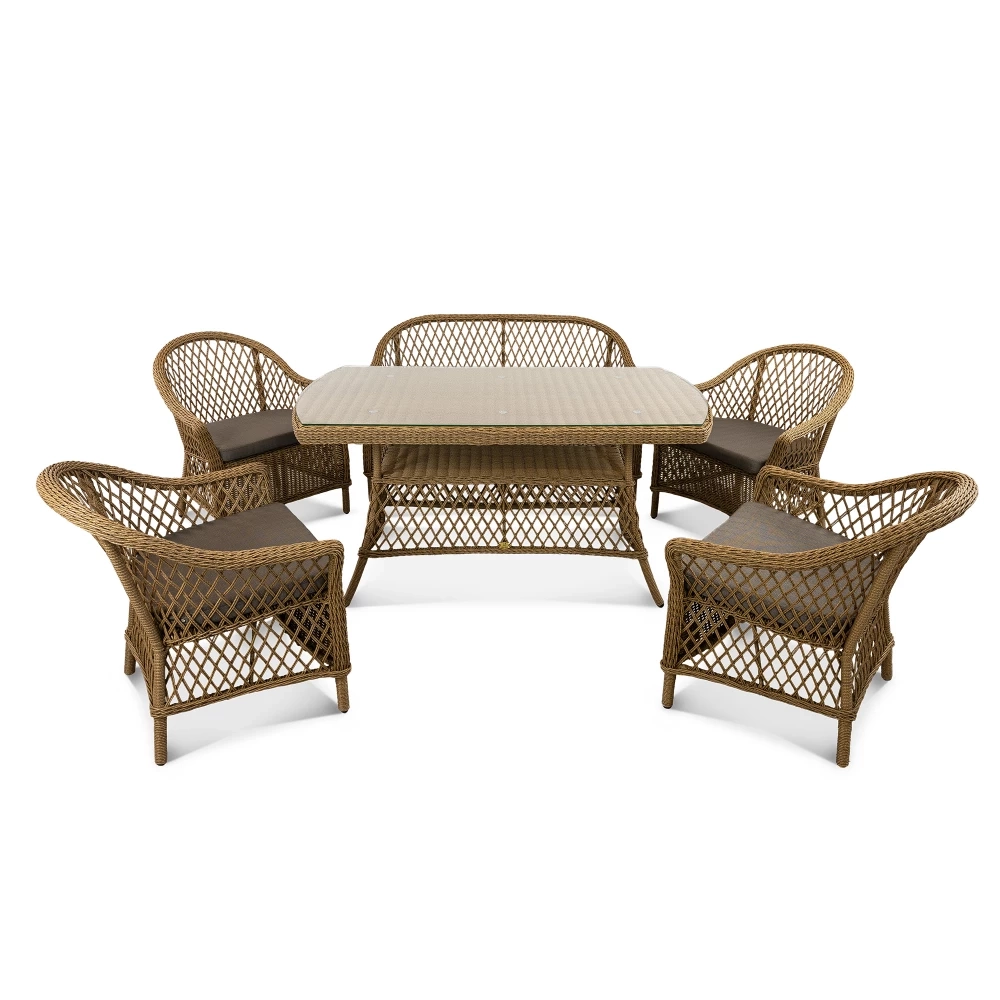 Цена на сайте указана за модель с плетением в цвете Американский орех и обивкой подушки из ткани Mossle 295. Для уточнения всех возможных вариантов материала и цвета данного изделия обращайтесь к нашим менеджерам.