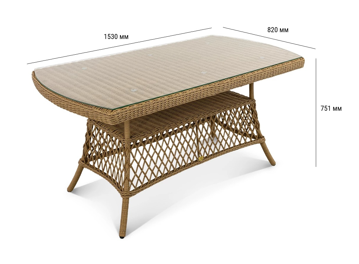 Стол Nova прямоугольной формы рассчитан на комфортное размещение шести персон. Его прочная основа - цельносварной алюминиевый каркас с износостойким порошковым покрытием, дополненный долговечным плетением из искусственного ротанга. Практичная столешница из закаленного стекла легко вписывается в любой интерьер и неприхотлива в уходе.