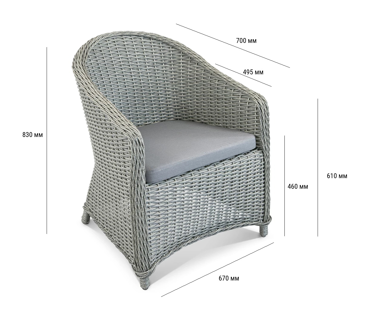 Кресло плетеное с подушкой Mallow Tagliamento, Китай, 605х595х760 мм