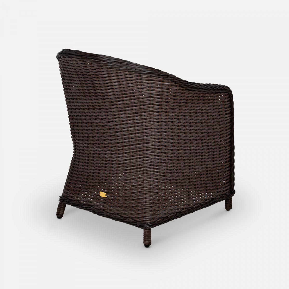 Кресло Primo объединяет в себе утонченность и практичность в каждой детали. Его прочность начинается с цельносварного алюминиевого каркаса и порошковым напылением, исключающим риск коррозии и деформации. Материал отделки - искусственный ротанг, который не выцветает на солнце, не боится дождя и перепадов температур.