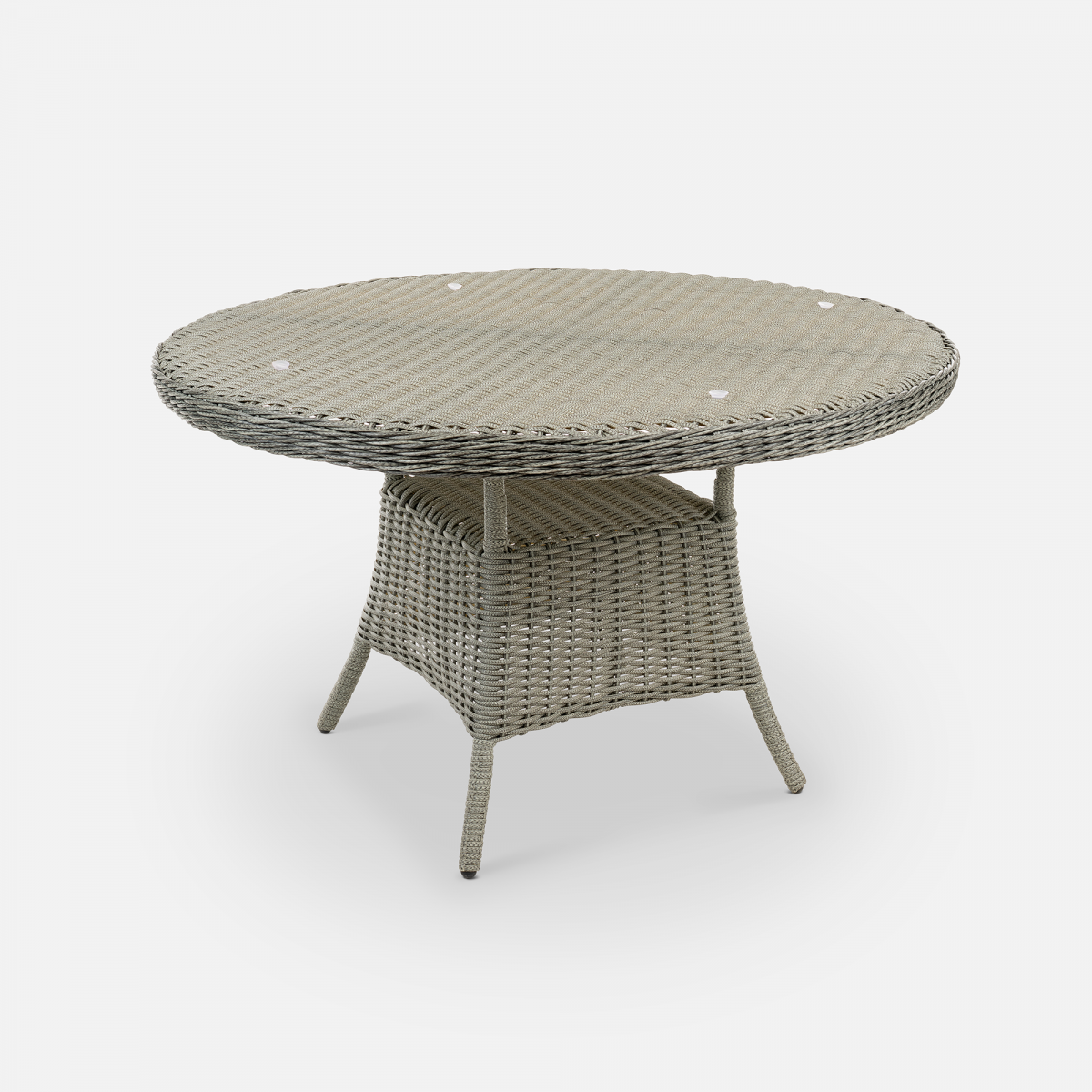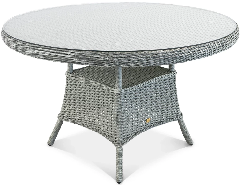 Стол Primo круглой формы рассчитан на комфортное размещение шести персон. Его прочная основа - цельносварной алюминиевый каркас с износостойким порошковым покрытием, дополненный долговечным плетением из искусственного ротанга. Практичная столешница из закаленного стекла легко вписывается в любой интерьер и неприхотлива в уходе.
