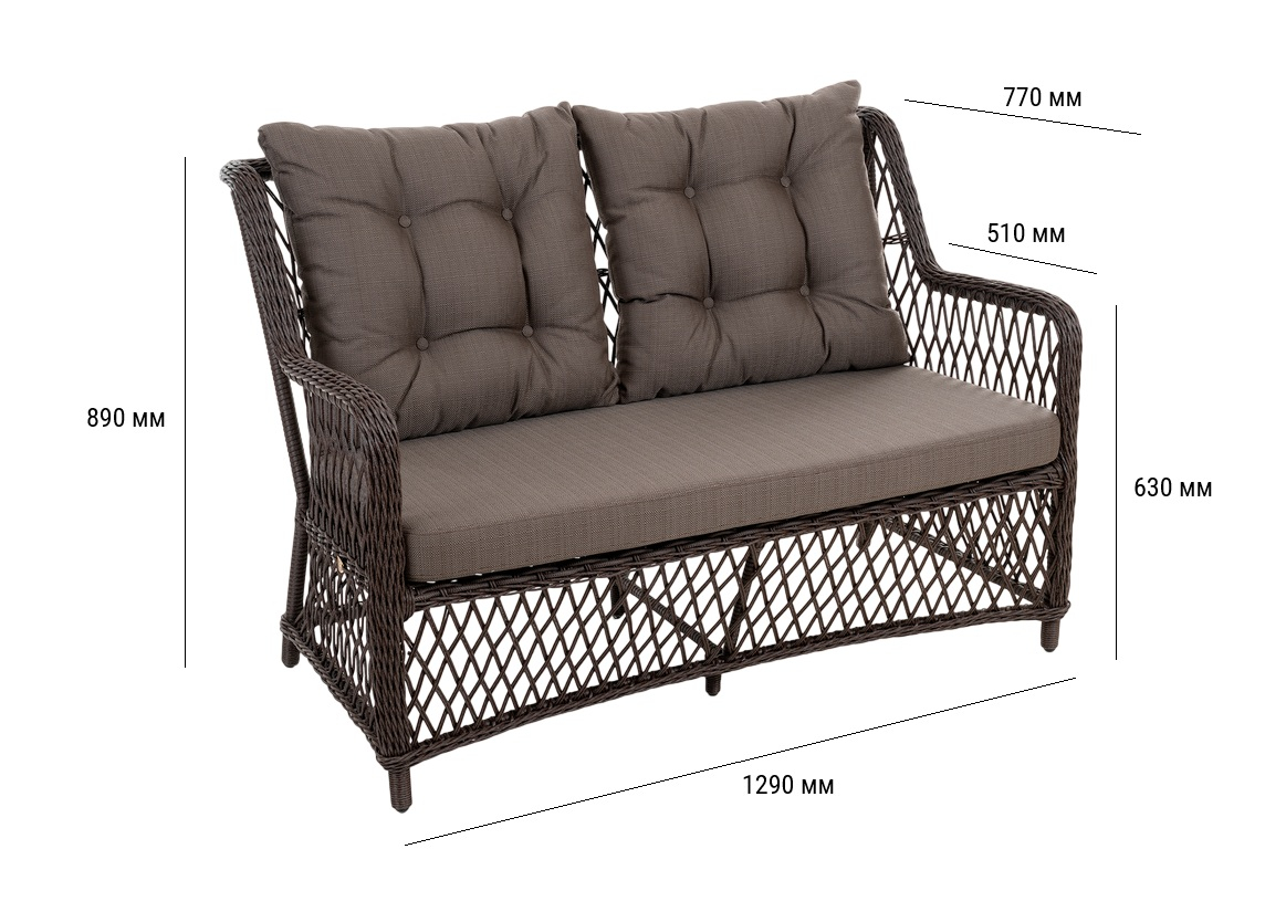 Диван двухместный плетеный с подушками Titulo ReeHouse, Россия, 1290х770х890 мм