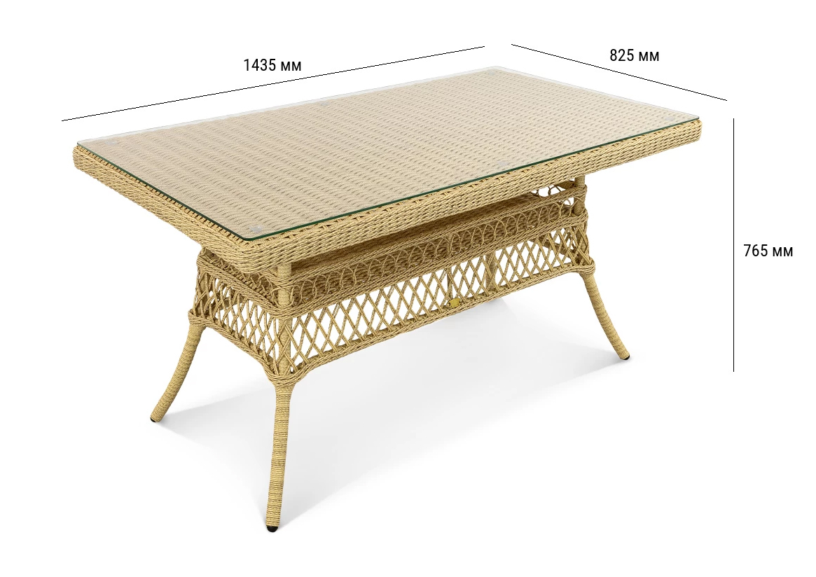 Стол Titulo прямоугольной формы рассчитан на комфортное размещение шести персон. Его прочная основа - цельносварной алюминиевый каркас с износостойким порошковым покрытием, дополненный долговечным плетением из искусственного ротанга. Практичная столешница из закаленного стекла легко вписывается в любой интерьер и неприхотлива в уходе.