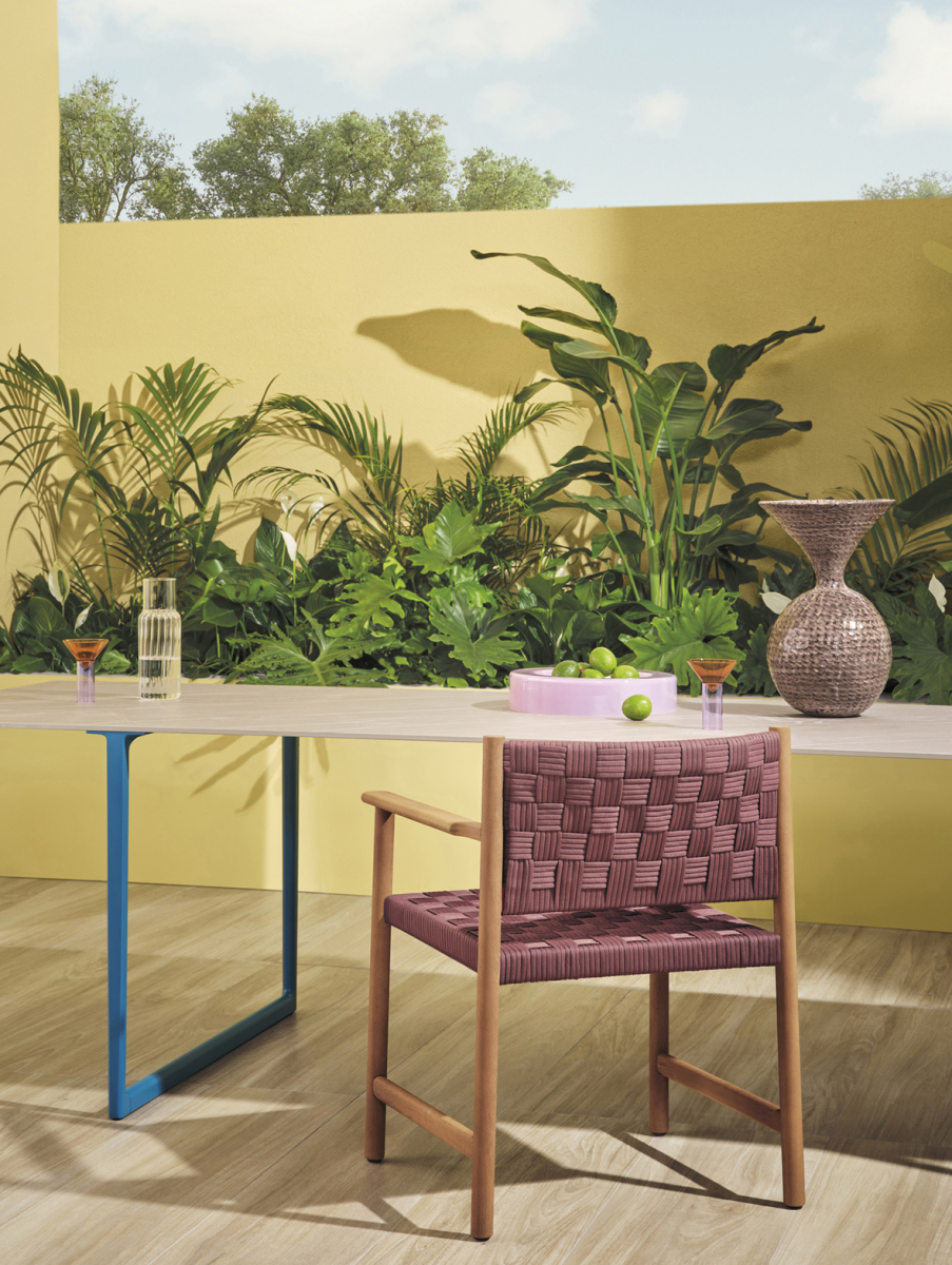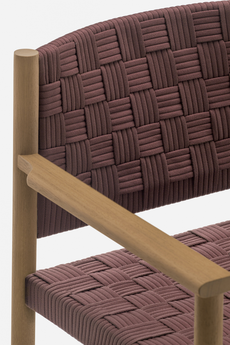 Griante переосмысливает концепцию плетеных сидений с помощью дизайна, сочетающего традиционное мастерство и промышленное производство. Уличное кресло с каркасом из тика - изысканной породы дерева, сертифицированной по стандарту FSC® C114358. Цилиндрические ножки поворачиваются, а алюминиевая рама обеспечивает опору для сиденья.