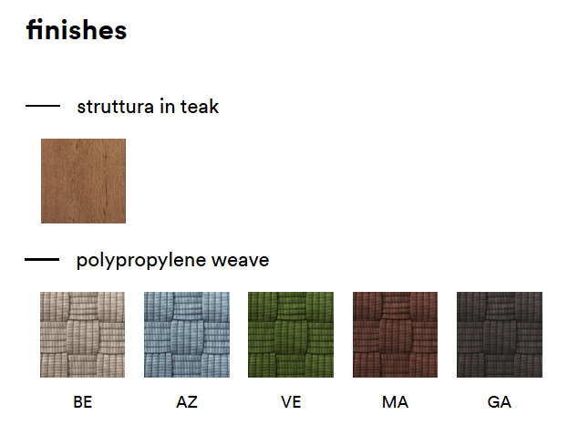 Главной особенностью Griante является сиденье и спинка, изготовленные вручную в Италии, с полностью пригодной для вторичной переработки лентой из полипропиленовой пряжи с трехмерной текстурой, которая обеспечивает комфорт и устойчивость к атмосферным воздействиям, а также легко разбирается. Тканый узор характеризуется многократным использованием геометрических форм квадратов, которые подчеркивают щедрые пропорции сиденья, создавая изысканный и уютный вид.