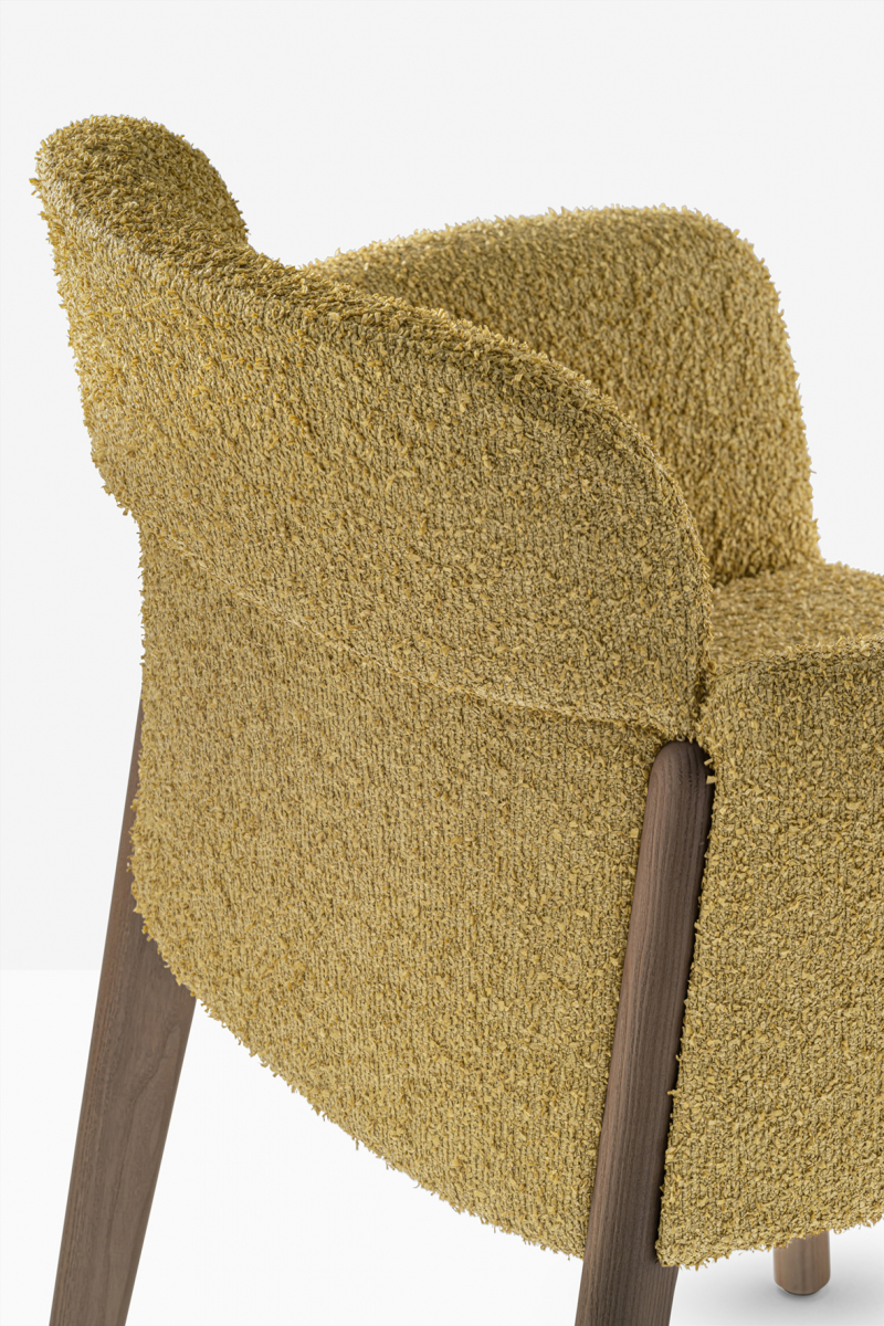 Кресло Opale отличается плавным и точно сбалансированным дизайном. Его формы мягкие и органичные. Соединение ножек, подлокотников и спинки образует тонкий стык, который определяет суть силуэта кресла. Овальная форма ножек из массива ясеня или ореха постепенно сужается книзу и становится круглой. Внутри сиденье оснащено эластичными ремнями безопасности, а спинка и подлокотники, изготовленные из вспененного полиуретана, обеспечивают сбалансированные пропорции. Особенностью Opale является функциональная ручка, встроенная в заднюю часть спинки, которая вписывается в силуэт кресла, придавая ему объемный вид.
