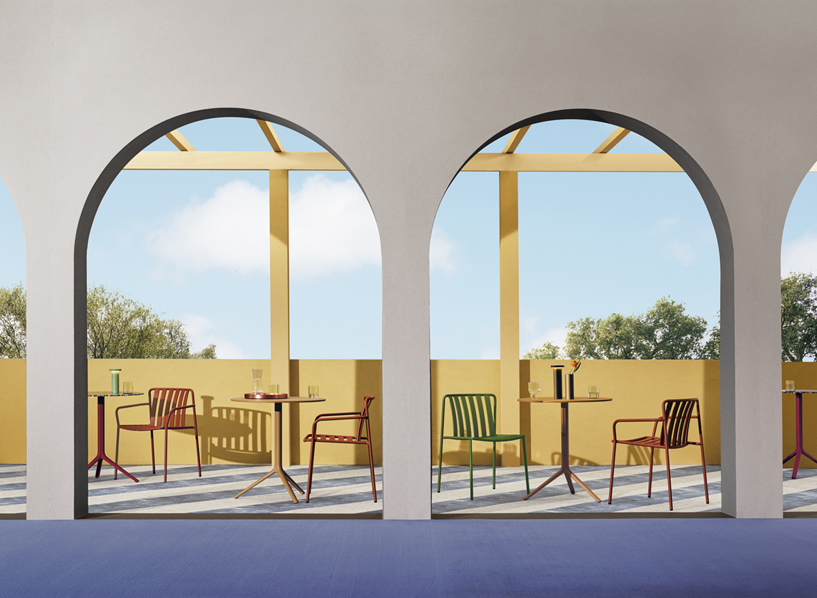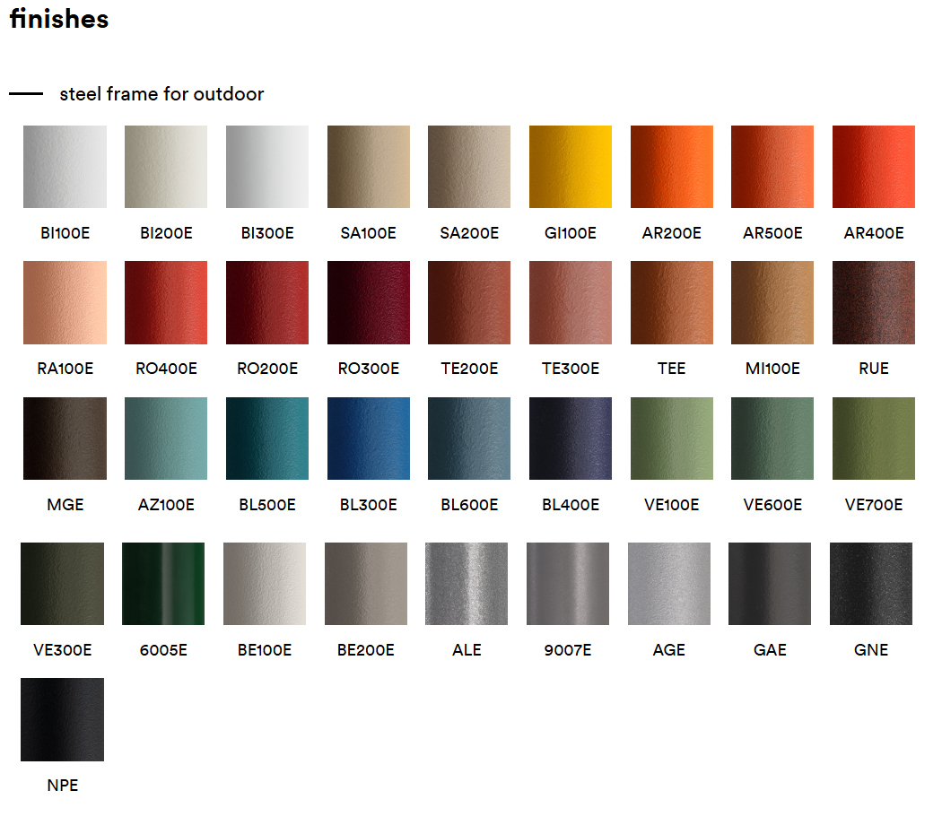 Coney - это коллекция уличной мебели, сочетающая в себе функциональность, комфорт и выразительный визуальный эффект. Стул из мономатериала с изогнутым и прочным трубчатым каркасом. Сиденье и спинка создают трёхмерную опору, обеспечивая структурную прочность и эргономичность. Равномерно расположенные вертикальные планки спинки, отформованные из листового металла, вместе с горизонтальными планками сиденья создают неповторимый рисунок. Coney идеально подходит как для зон отдыха в городских пространствах или ресторанах, так и для домашних террас.